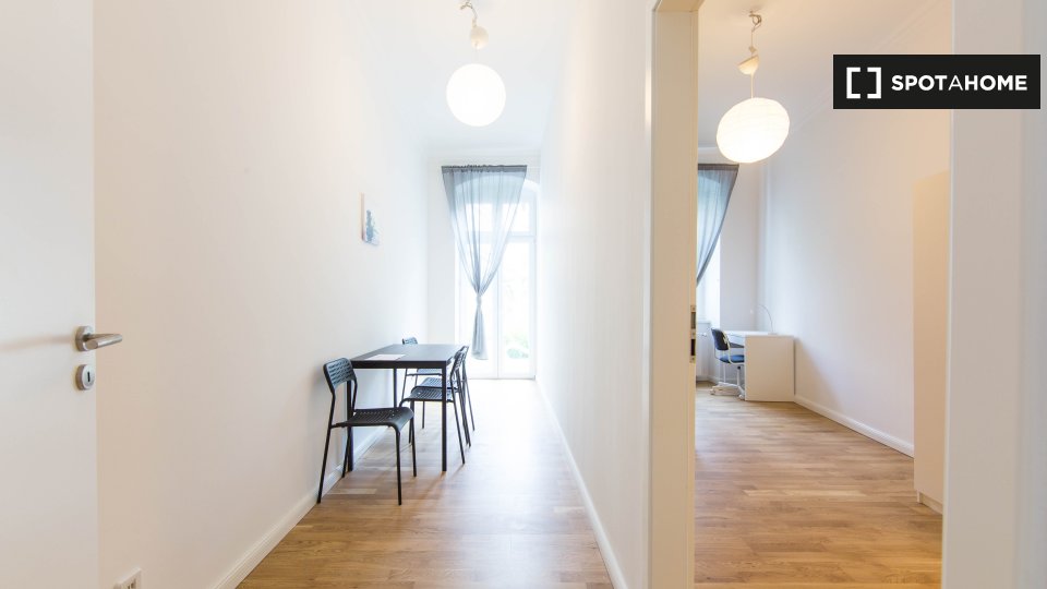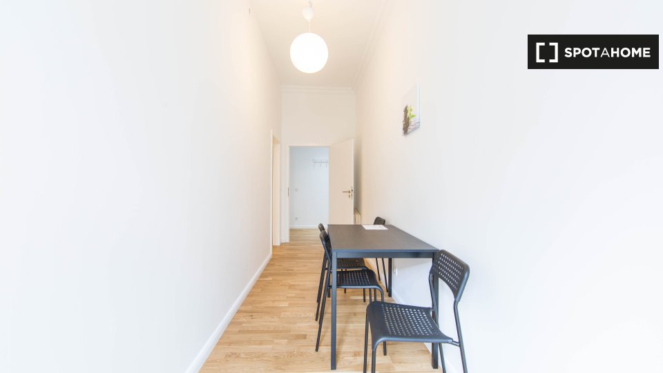Pets not allowedNot allowedThis fully furnished room in a shared 3-bedroom apartment in Berlin provides a comfortable and equipped living environment. It comes with an equipped kitchen and private washing machine usage. The property includes all utilities, including electricity, gas, water, WiFi, heating, and bed linen.