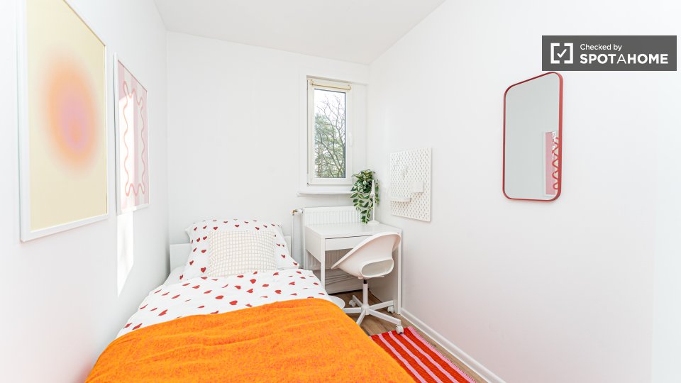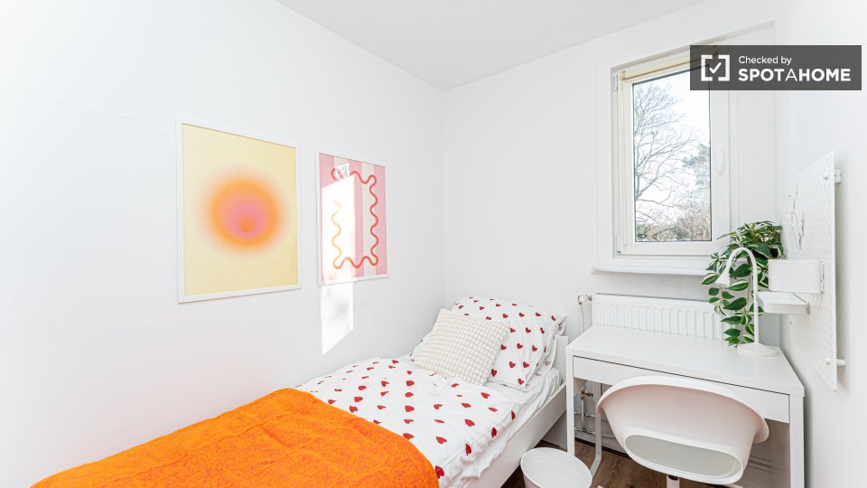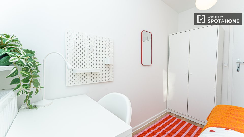 This is a wonderful room in a shared 9-bedroom apartment, offering a fully furnished space ideal for professionals and students. All rooms are exterior, enhancing the living experience. The apartment features a private washing machine, making laundry conveniently accessible. It comes with an equipped kitchen, including an oven, to cater to your cooking needs. Additionally, tenants enjoy the benefit of all bills being included. This apartment is located in Berlin. The area provides easy access to a variety of points of interest and facilities. Although specific details about nearby metro stations, supermarkets, or tourist spots are not available, Berlin offers diverse and convenient amenities and landmarks to explore.