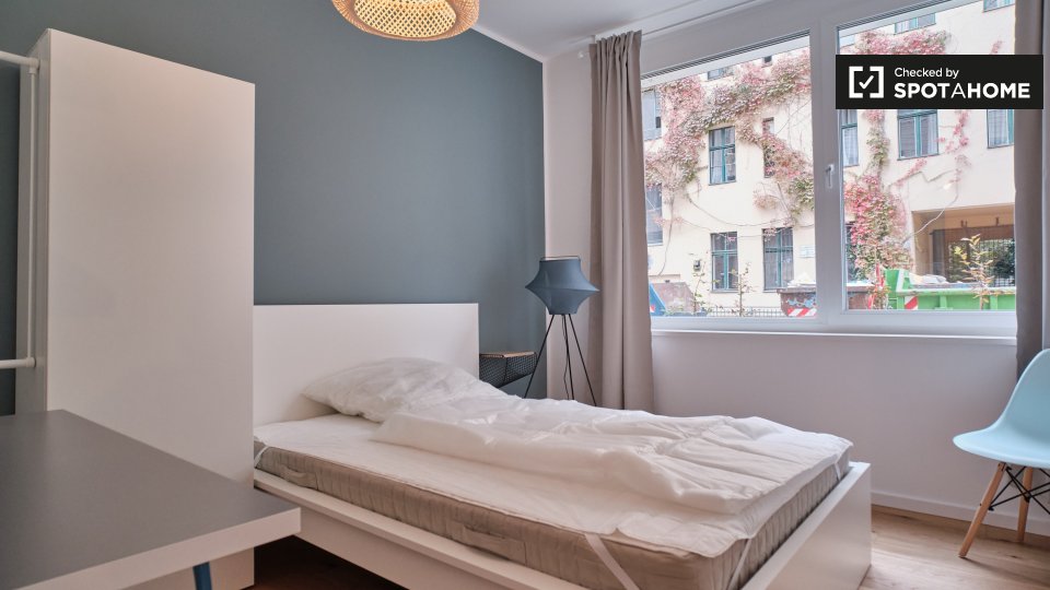 _**The neighbourhood....**_ Wedding is coming! Located just around Leopoldplatz this location is a hot spot and we are delighted to show you around. Enjoy the vibrant streets of Wedding filled with cafes, restaurants and shops or have a relaxing stroll through the weekly farmer's market at Leopoldplatz on Saturday morning. With the trendy Sprengelkiez, the busy Charité Campus and the variety of parks, you will find yourself in the perfect spot with a great balance of residential and Co-living space. This popular district is very well connected and you will find yourself within easy access to public transport and only 10 min away from Mitte and city center. _**The space....**_ Amazing! This is a new build Co-living space designed for shared apartment only. This place has everything to get you started, just bring your suitcase and enjoy! The apartment is spacious and well lit. From top to bottom, the flat is finished with attention to every detail. One of the highlights is the beautiful hardwood floor with underfloor heating, that will keep you cozy during the cold months. _**The perks...**_ Where to begin.....This place is very unique and very well connected with public transport. You will be close to central Berlin in a rise neighbourhood with restaurants and bars for the foodie in you, as well as places like the Atze Musikteather right at your finger tips for your cultural needs. This is an all inclusive and worry free rental. The price includes all bills (the German TV tax GEZ is not included). Co -Living building with plenty of opportunities to interact with people and still have a gorgeous, spacious and private room to call home.