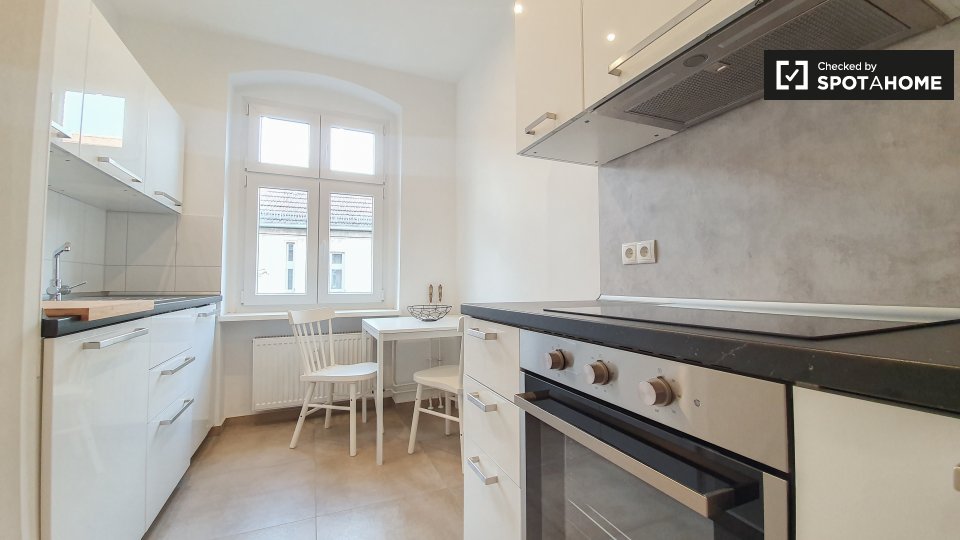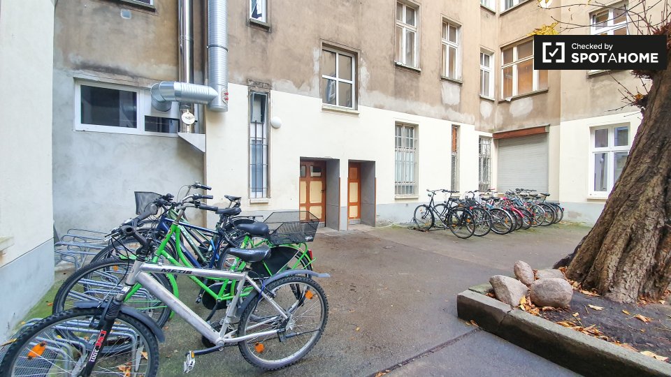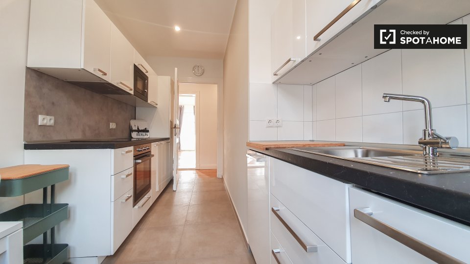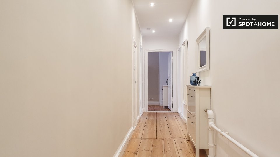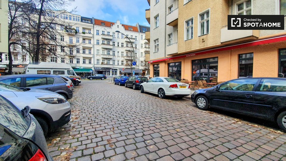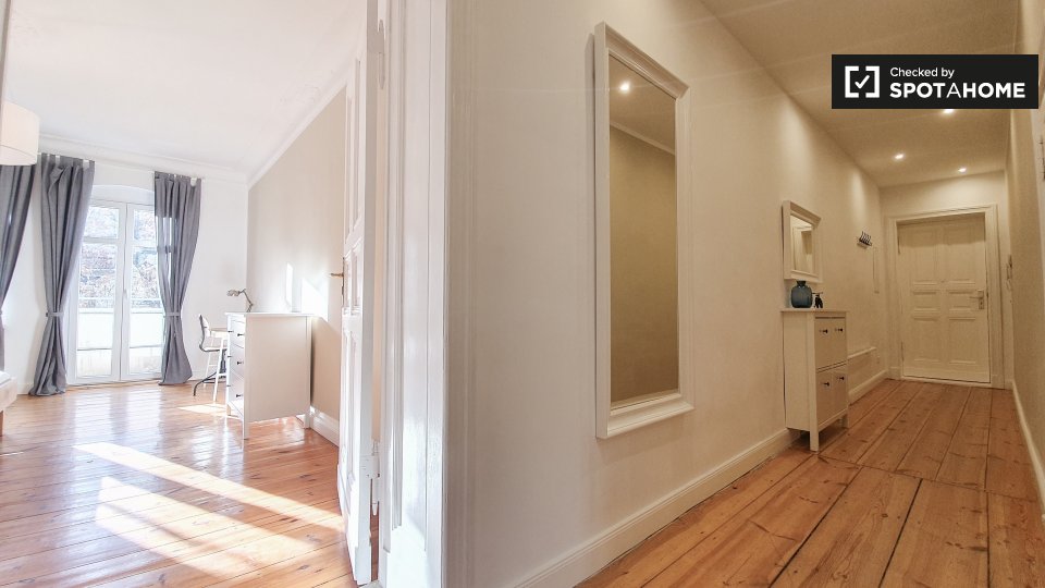 This is a 4th-floor apartment with 2 bedrooms on Krossener Str., Berlin. There are big and bright bedrooms to rent in this stylish and well-decorated apartment.