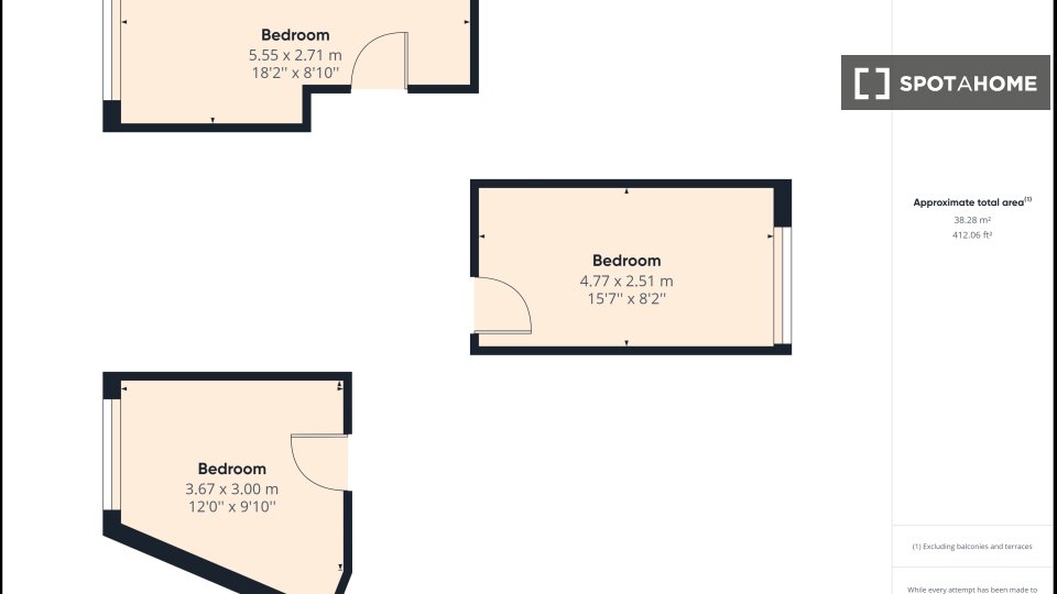 55 m2Bedrooms