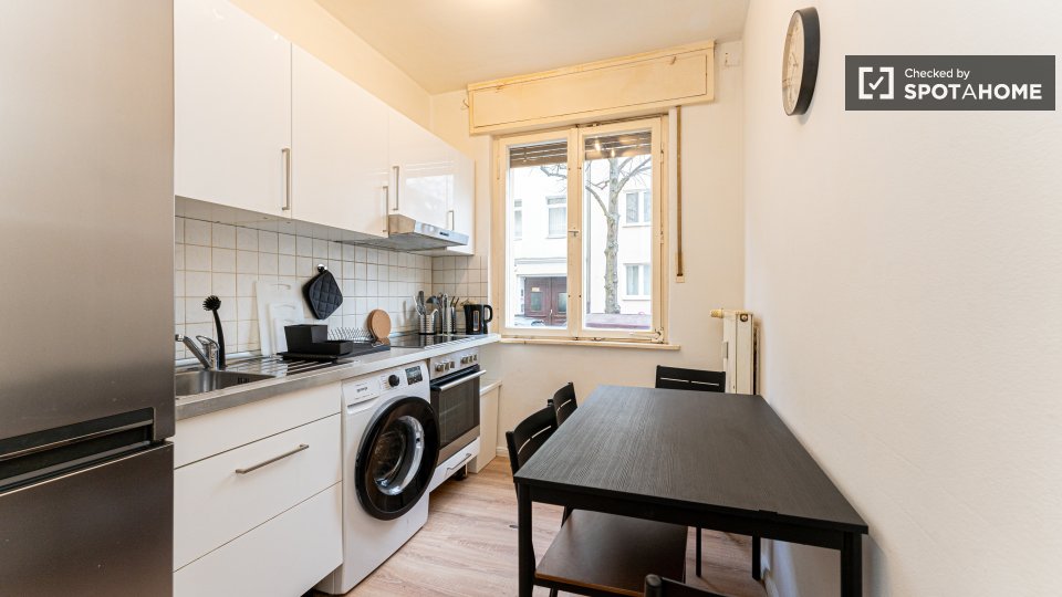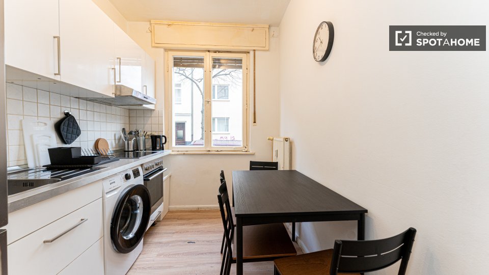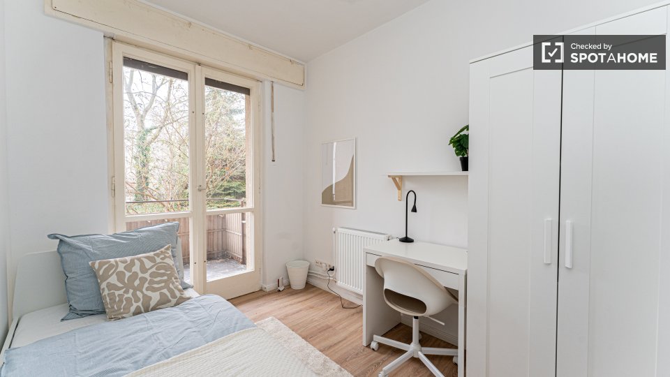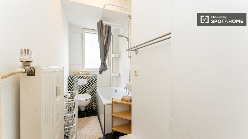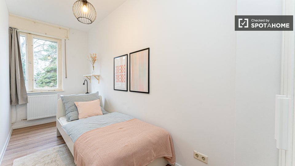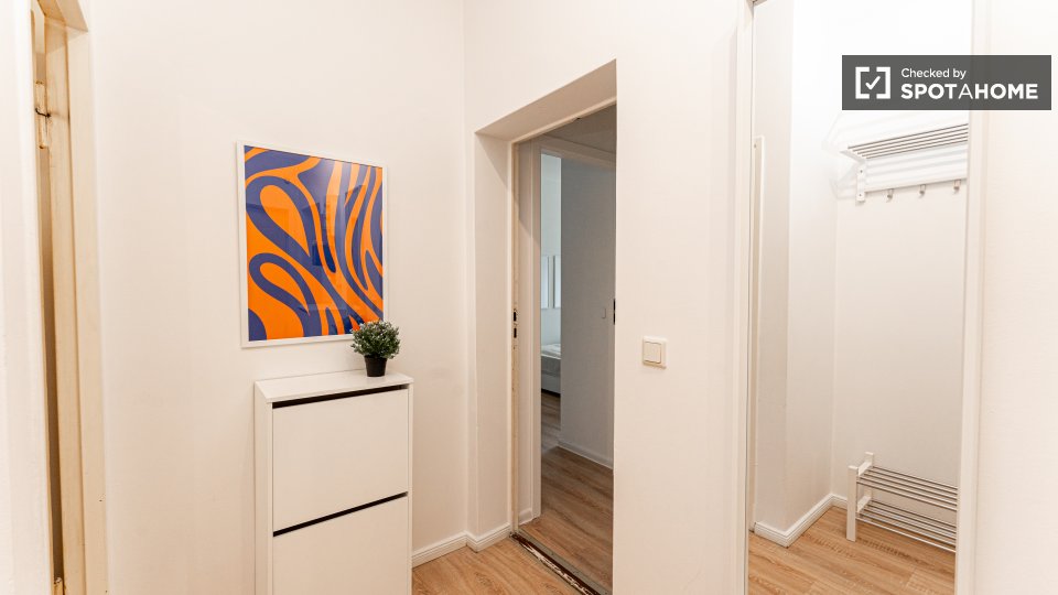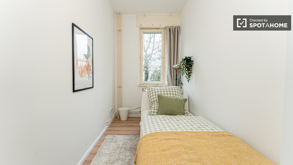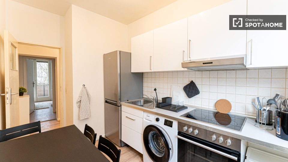Pets not allowedNot allowedWelcome to a comfortable room in a shared 4-bedroom apartment located in Berlin. This fully furnished accommodation ensures a pleasant stay and includes an equipped kitchen and a private washing machine for your convenience. Additionally, the space features a balcony or terrace for moments of relaxation. It's been personally checked by Spotahome, guaranteeing reliability and comfort. All bills — electricity, water, gas, and WiFi — are included, making it perfect for professionals and students. Please note that couples are not permitted.