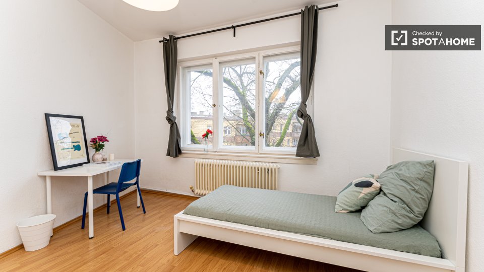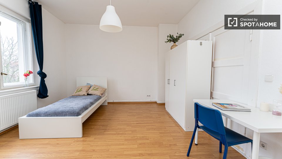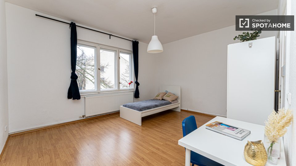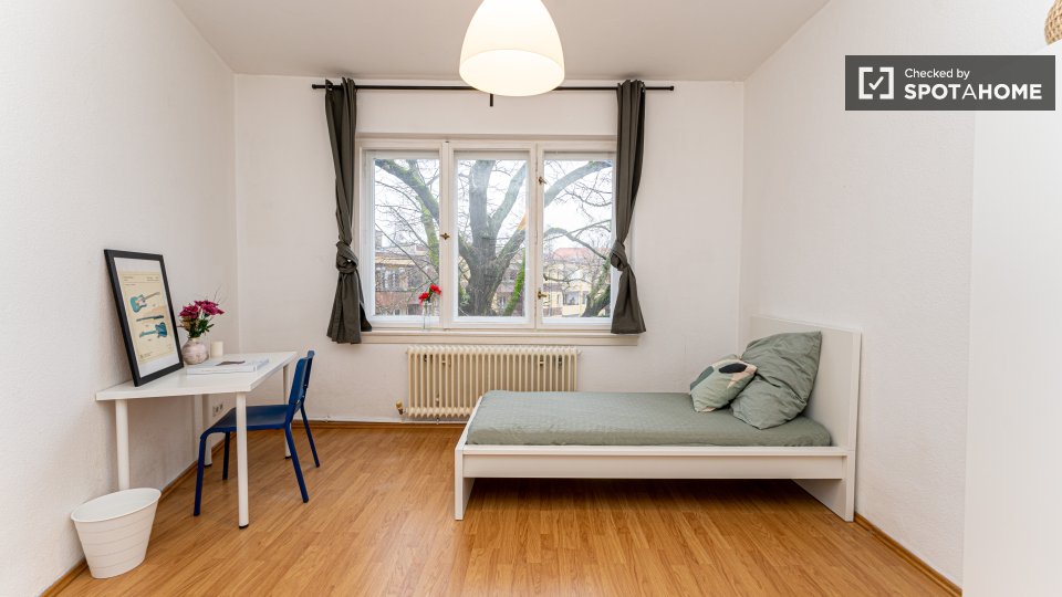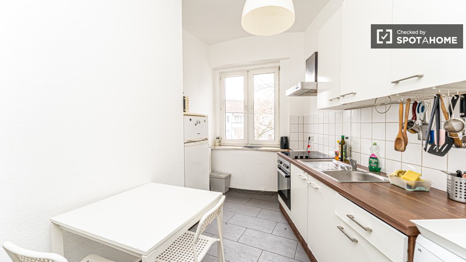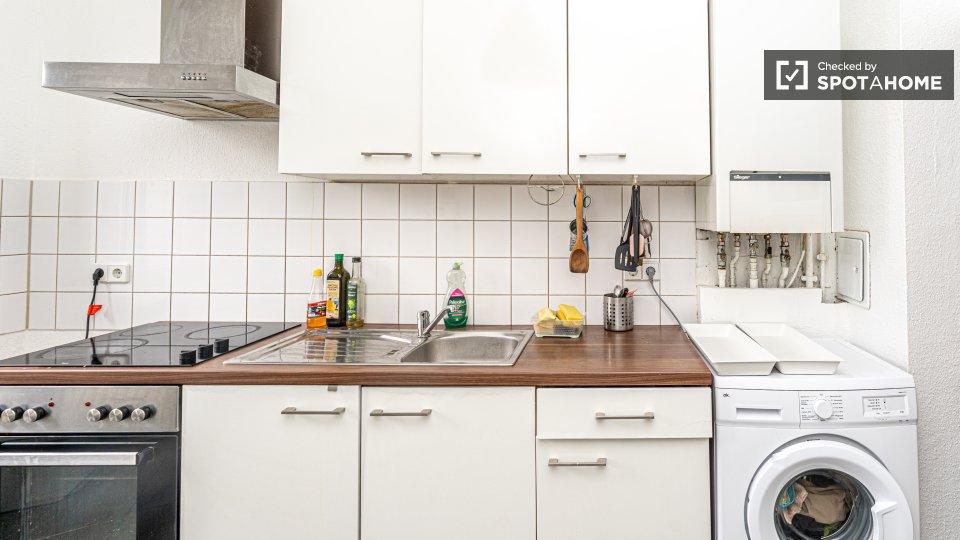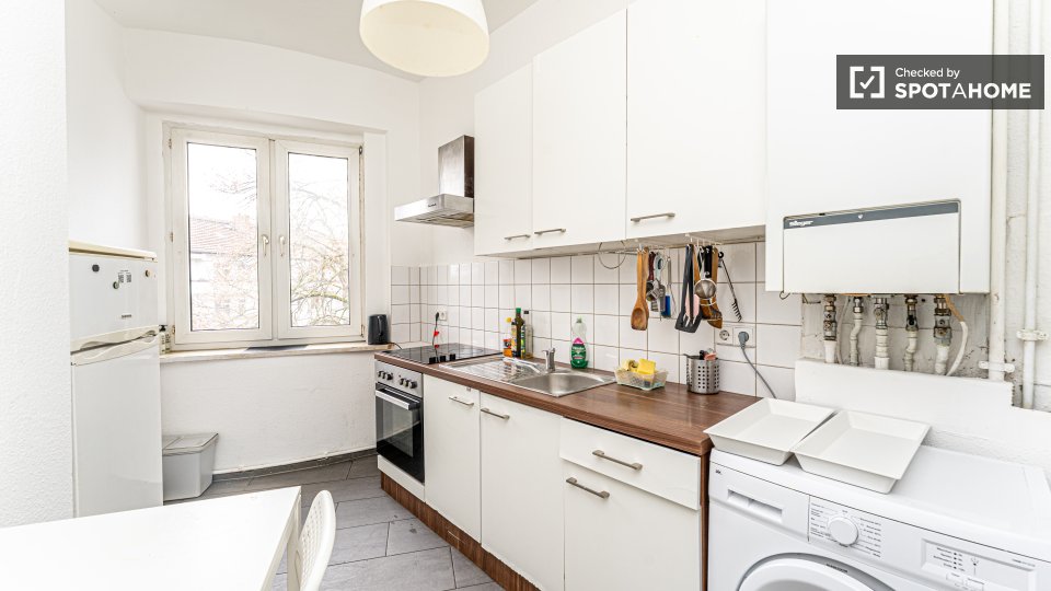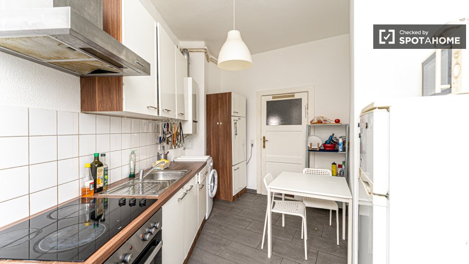 Pets not allowedNot allowedWelcome to this cozy room in a shared 4-bedroom apartment located in Berlin. This apartment offers a comfortable living environment with central heating and a fully equipped kitchen. The washing machine is private for your convenience. Bills for electricity, water, gas, WiFi, heating, and council tax are included in the rent. Smoking, pets, and couples are not allowed in this property. The apartment is checked by Spotahome, ensuring its quality and standards.