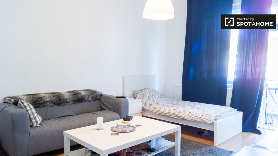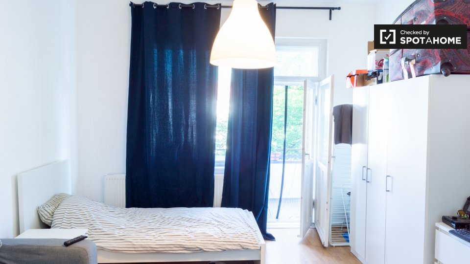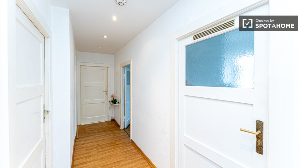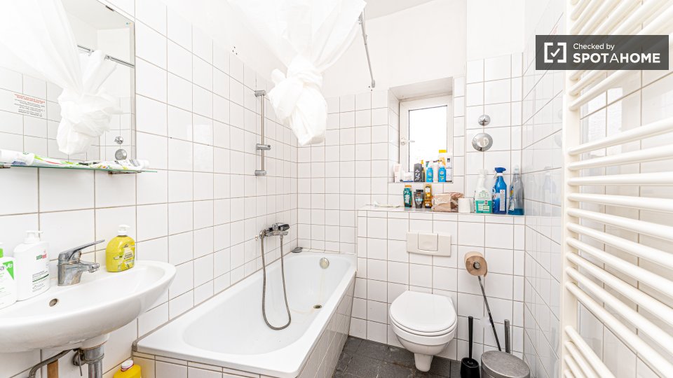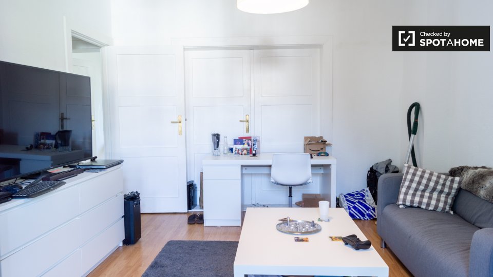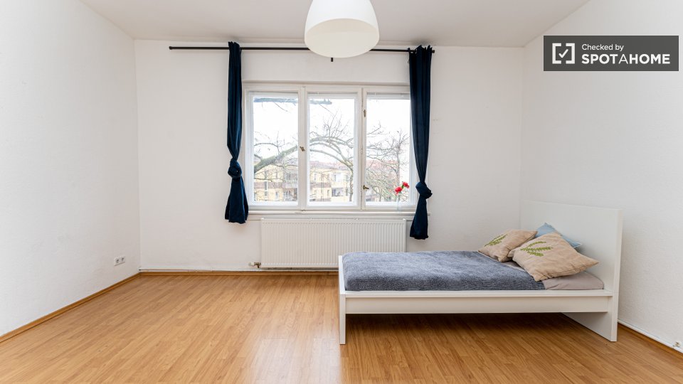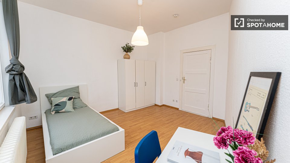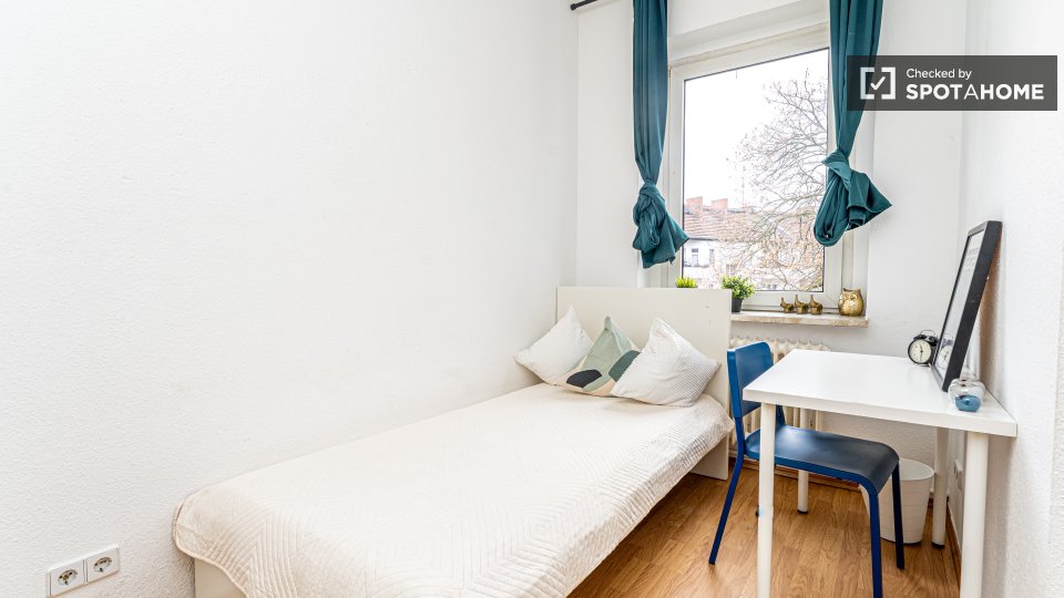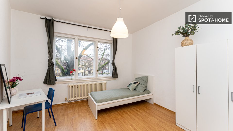 Pets not allowedNot allowedWelcome to this cozy room in a shared 4-bedroom apartment located in Berlin. This apartment offers a comfortable living environment with central heating and a fully equipped kitchen. The washing machine is private for your convenience. Bills for electricity, water, gas, WiFi, heating, and council tax are included in the rent. Smoking, pets, and couples are not allowed in this property. The apartment is checked by Spotahome, ensuring its quality and standards.