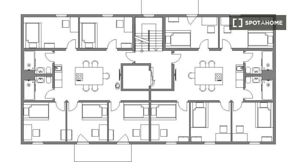 The kitchen is fully stocked for any wannabe-chef to get creative in – you’ll have all the pots, pans and knives, as well as a fridge to keep things cool. The center piece of this room is its stylish kitchen island where you can hang out, cook together or invite your roomies over for dinner. All apartments entail two spacious bathrooms that you’ll be sharing with your room mates.
