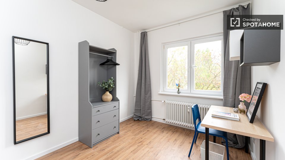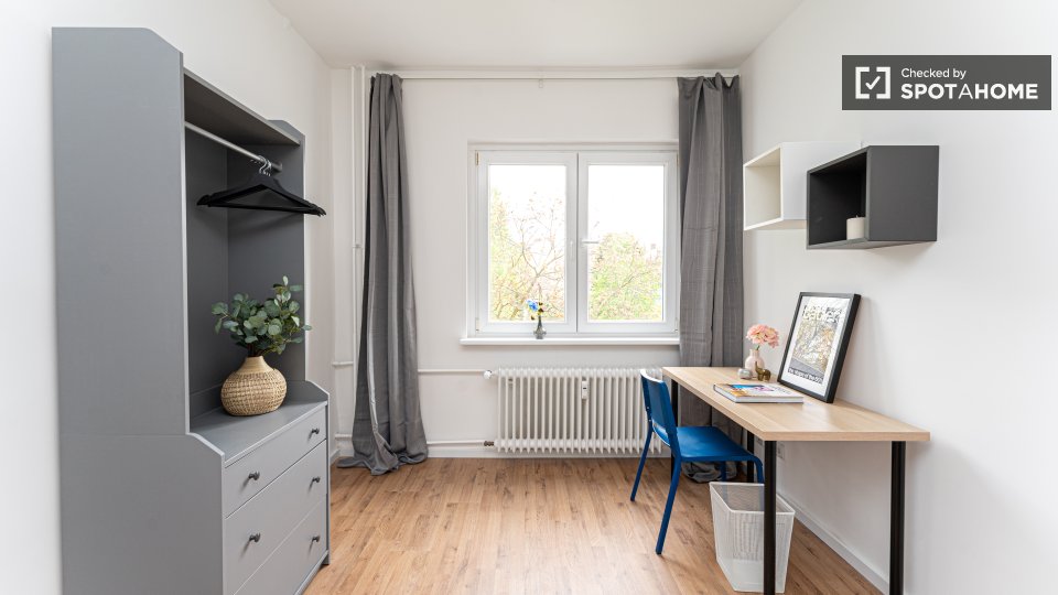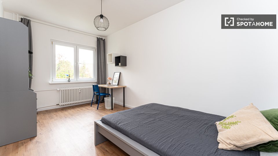 Pets not allowedNot allowedDiscover a comfortable room in a shared 3-bedroom apartment located in Berlin. The apartment is fully furnished and features a private washing machine and a private dryer, along with an equipped kitchen that includes essential appliances like an oven. All utility bills, including electricity, water, gas, WiFi, and heating, are included, making this an ideal choice for residents seeking convenience. The property has been checked personally by Spotahome, guaranteeing reliability and satisfaction.