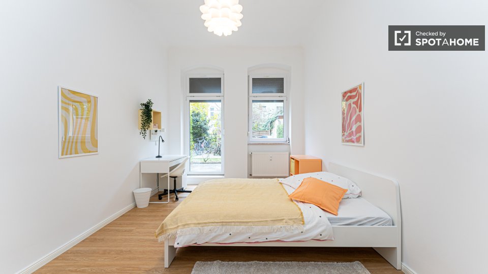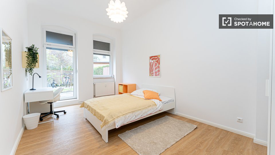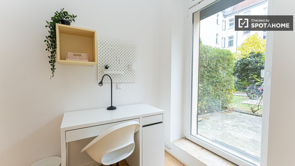 Rooms for rent in a furnished 5-bedroom apartment on Berlin. The property includes equipped kitchen, balcony, and washing machine.