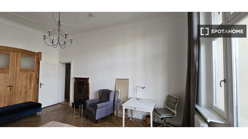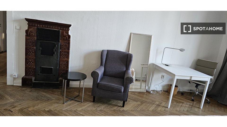 Pets not allowedNot allowedDiscover a comfortable and convenient room in a shared 4-bedroom apartment in Witzleben, Berlin. The property is furnished, features an equipped kitchen, a balcony ideal for leisure moments, and offers all necessary modern amenities. With bills included in the rent, this meticulously maintained apartment is perfect for professionals or students. Pets and couples are not allowed, and the building also includes an elevator for accessibility.