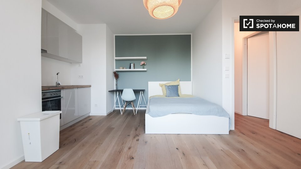 Pets not allowedNot allowedThis is an exterior room available in a shared 2-bedroom apartment in Berlin. The apartment is fully furnished and features modern amenities such as an equipped kitchen, an oven, and a common washing machine and dryer. Enjoy the balcony in this conveniently located flat. The apartment supports a diverse range of tenants including professionals, students, and Erasmus participants. Spotahome has verified this property for your convenience.