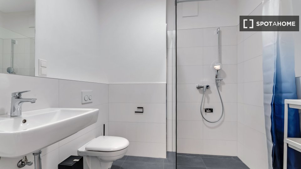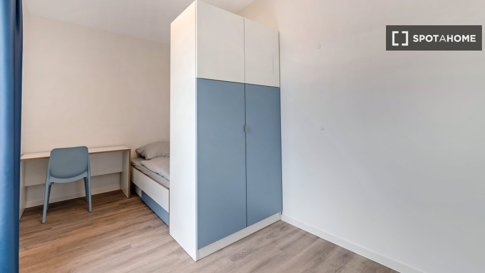This fully furnished shared room in a new building combines modern comfort with practical furnishings. It has a spacious closet that offers plenty of storage space for clothes and personal items. A special feature is the underfloor heating, which provides a pleasant warmth and gives a cozy feeling, especially in the colder months. The building itself is equipped with an elevator, which makes everyday life easier, especially when transporting shopping or heavy items. There is also a laundry room in the basement, which is available to all residents and makes washing and drying clothes convenient.