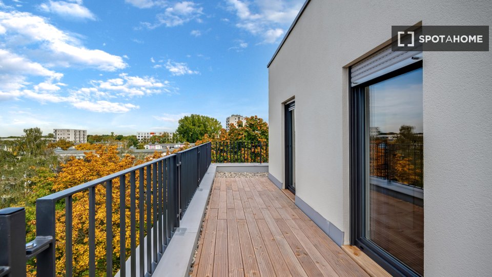 Located in close proximity to the campus of the University of Applied Sciences (HTW), the flat is only about 500 m from the Spree river promenade. There is also a fitness studio in the immediate vicinity.