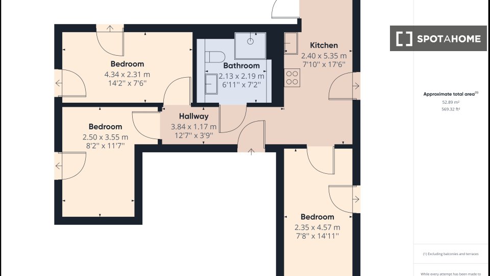 The flat is a 3-room flat-share with a shared kitchen and shared bathroom.