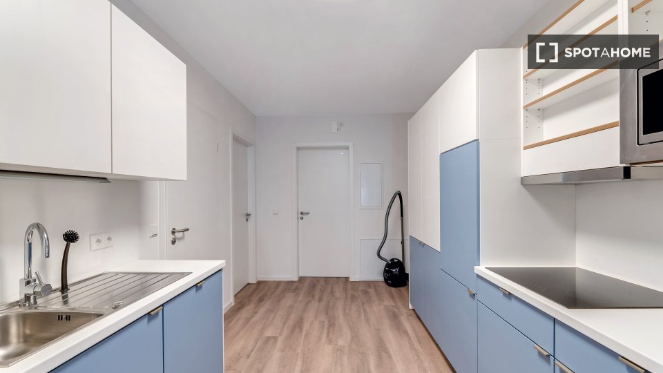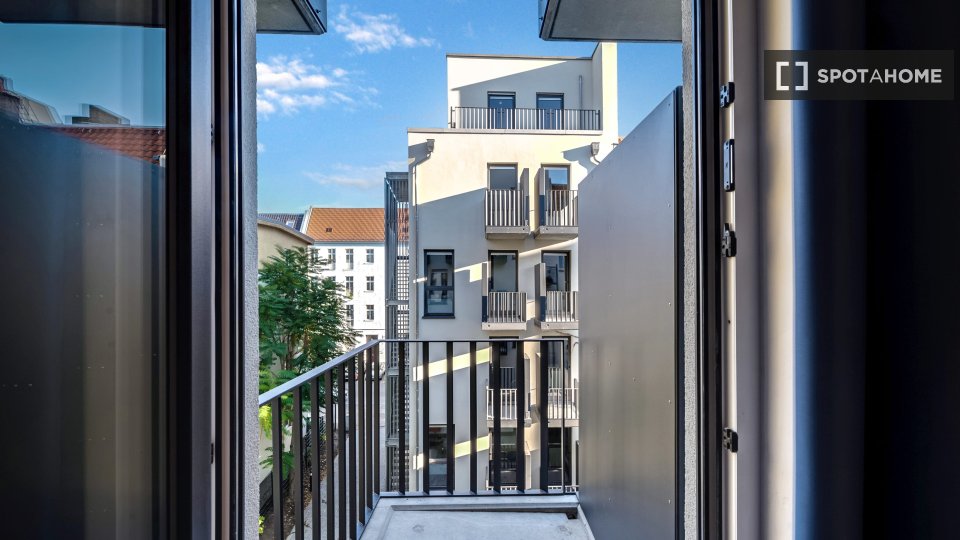 The shared rooms have a well-equipped communal kitchen with a large dining table. Of course, your room is lockable. Most rooms have balconies.