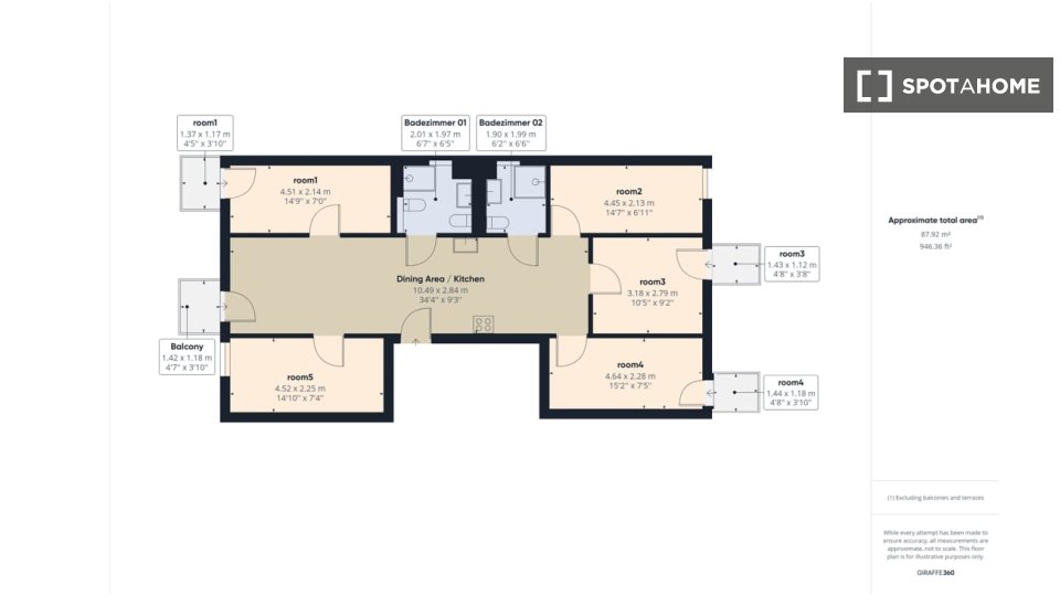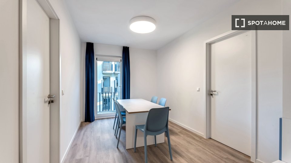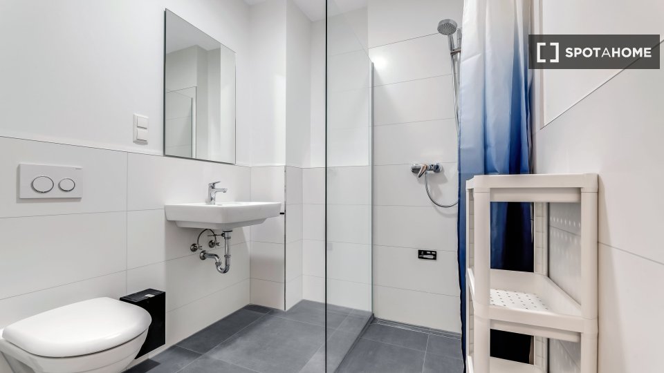 The flat is a 5-room flat-share with a shared kitchen and two bathrooms.