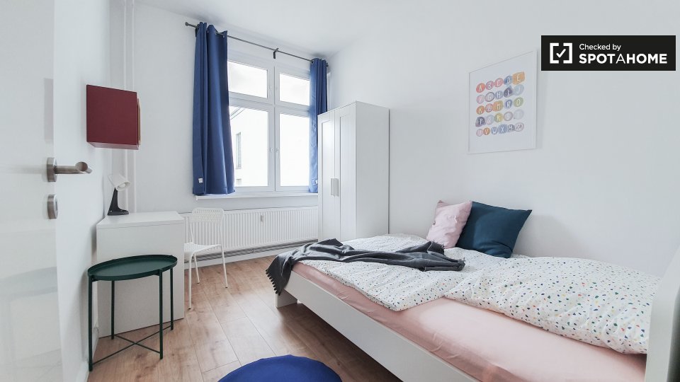 Pets not allowedNot allowedWelcome to Spotahome’s room rental in a shared 8-bedroom apartment located in the vibrant Luisenstadt area of Berlin. This expansive flat offers well-furnished living spaces suitable for students and professionals. The property is equipped with a private washing machine, an oven, and other essential amenities. With all-inclusive bills covering electricity, water, gas, and wifi, this room ensures a worry-free lifestyle tailored for busy individuals.