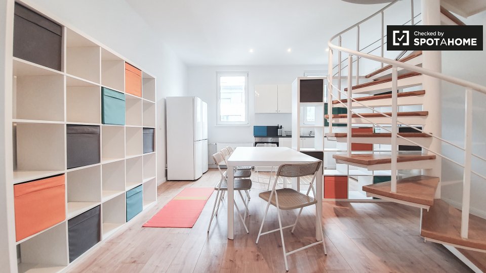 Situated conveniently in Luisenstadt, the apartment provides access to notable places of interest: enjoy global cuisines at Harissa Oriental Cuisine or Lapho just minutes away, or visit iconic landmarks like Herkules im Kampf mit dem Nemeischen Löwen and the Heinrich Zille Denkmal. Experience renowned sites like the Embassy of The Netherlands or the Alte Berliner Stadtmauer, which are within a short walking distance. Make this room your next home in Berlin and embrace the city's charm!