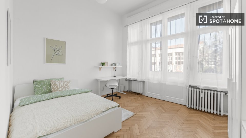 Pets not allowedNot allowedExperience modern living in a shared 7-bedroom apartment in Bayerisches Viertel, Berlin. This apartment has been verified by Spotahome for your peace of mind. It comes fully furnished and features an equipped kitchen, a private washing machine, and a balcony or terrace, providing comfort and functionality to its occupants. All bills including electricity, water, gas, heating, and WiFi are covered, making it ideal for students and professionals. The property does not allow couples. Smoking and pets are not permitted.