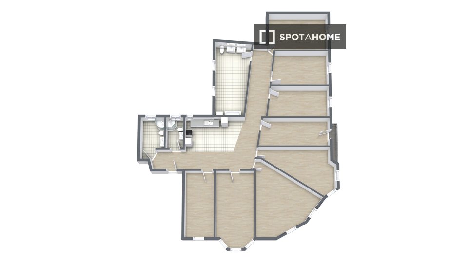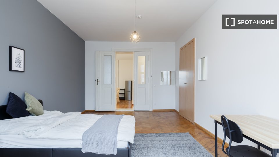 This modern apartment has everything you need for a comfortable daily life, including a shared kitchen, fully equipped with all the essentials, a dining room, and a washing machine to simplify your household chores.