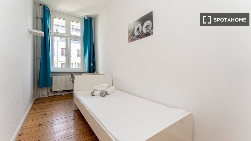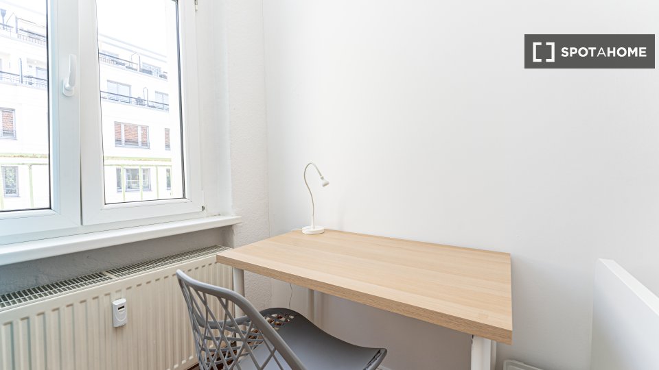 Pets not allowedNot allowedThis exterior room in a shared 3-bedroom apartment, located on Boxhagener Str. in Berlin, offers an inviting living environment to students, Erasmus participants, and professionals. Furnished with essential amenities, including a private washing machine, equipped kitchen with an oven, and a balcony or terrace, this apartment is designed to provide a comfortable stay. The property includes all bills in the rent, such as electricity, gas, heating, water, and WiFi, plus bed linen is provided. Please note that smoking and pets are not permitted, and couples or families are not accommodated. Although this property has not been personally verified by Spotahome, all landlords listed on Spotahome undergo a thorough vetting process ensuring the highest standards.