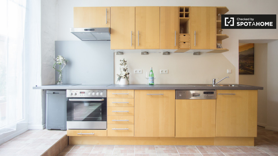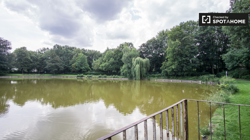 Pets not allowedNot allowed3-bedroom apartment is available to rent with views of the lake in Pankow, Berlin. The property is spacious and open, and it has a gorgeous living room with 2 large sofas and a TV for you to enjoy. The kitchen, which is open to the living room, has everything you might need, including a big fridge-freezer, an oven, a 4-burner electric stove, a dishwasher, and an enormous dining table. The bathroom is modern, and it has a sizable shower and a heated towel rack.