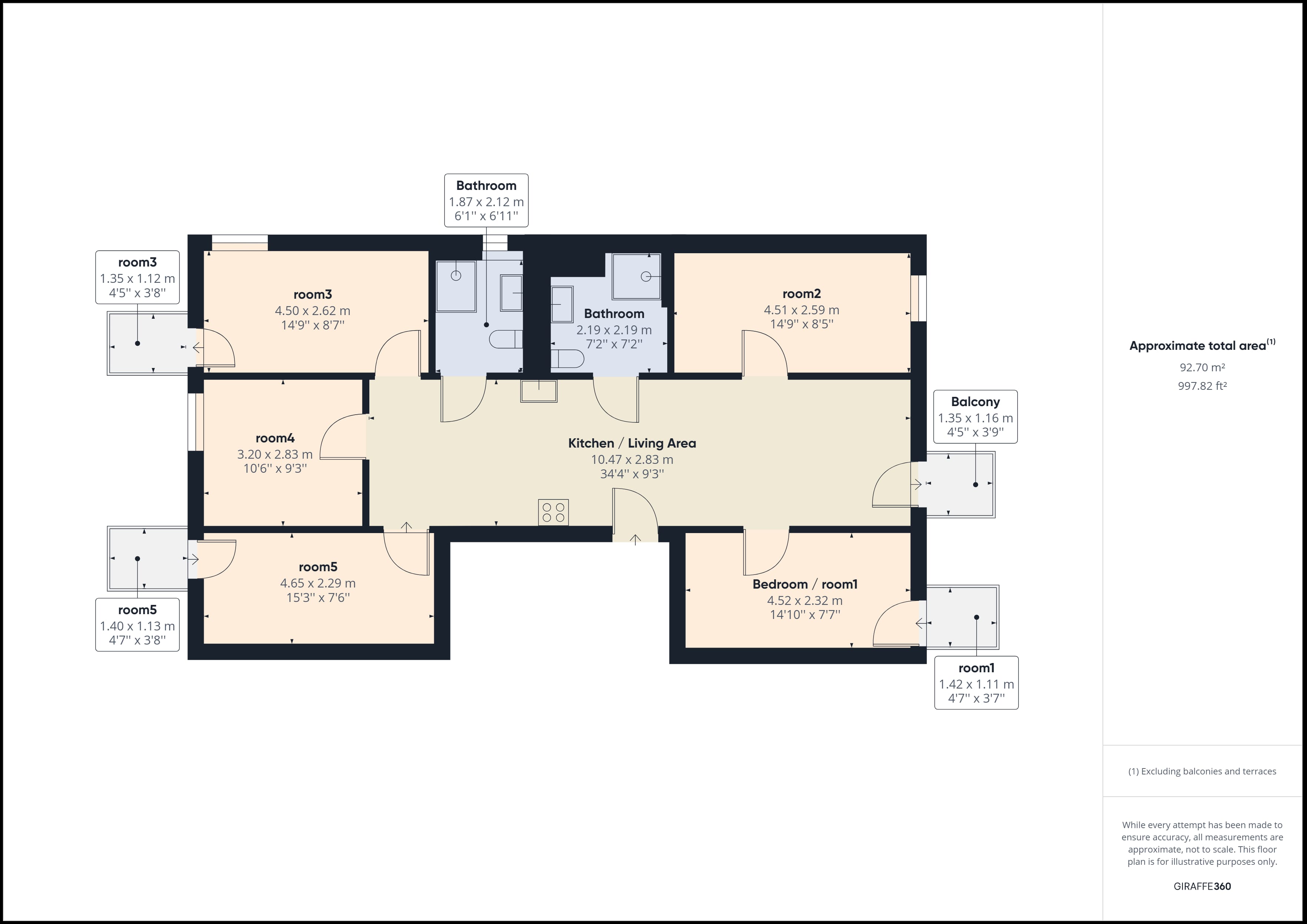 The flat is a 5-room flat-share with a shared kitchen and two bathrooms.
