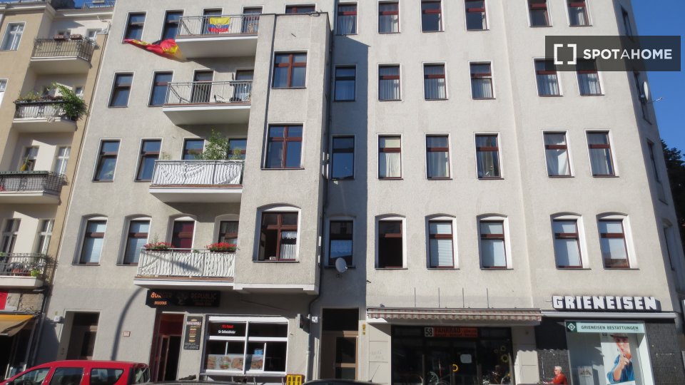 Pets not allowedNot allowedThis room in a shared 5-bedroom apartment is located in Berlin and comes with all bills included (electricity, gas, water, and WiFi). The kitchen is equipped for your convenience, making this an ideal choice for students, professionals, and Erasmus. Spotahome has personally checked this property.