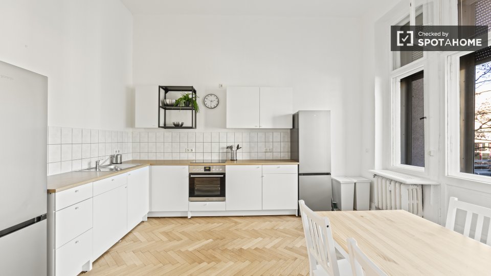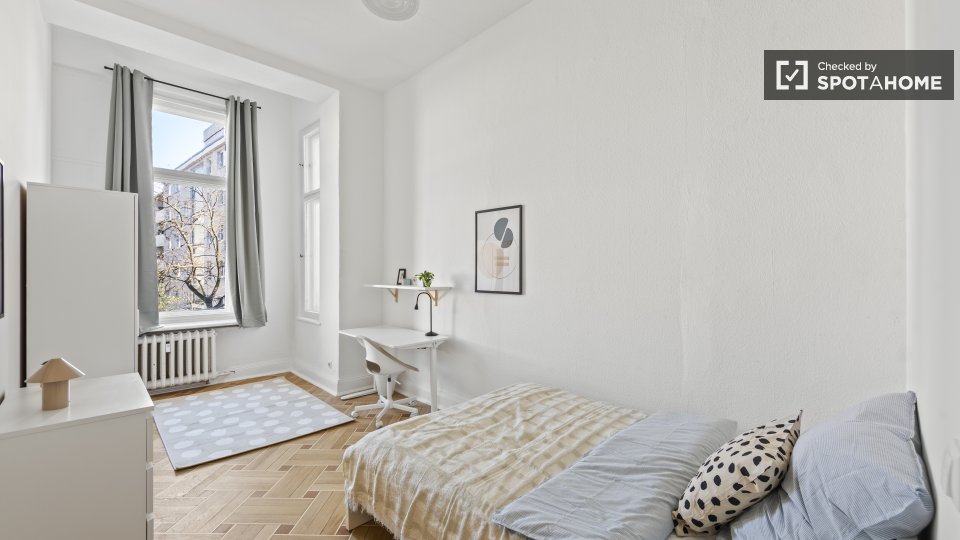 Pets not allowedNot allowedThis is a splendid room in a shared 8-bedroom apartment located in Bayerisches Viertel, Berlin. The apartment is fully furnished and features a balcony, an equipped kitchen, a private washing machine, and includes all bills (electricity, water, gas, heating, and Wi-Fi). It has been checked by Spotahome for your trust and convenience.