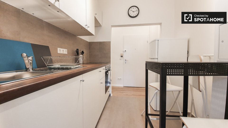 The apartment is situated in Berlin, a dynamic city filled with attractions. Restaurants such as Spät Shop and Tulus Lotrek are very close by, offering diverse options. The National Museum is also nearby, a prominent tourist attraction. The area is well-facilitated for everyday conveniences like markets, including Bio Company, ensuring a comfortable stay.