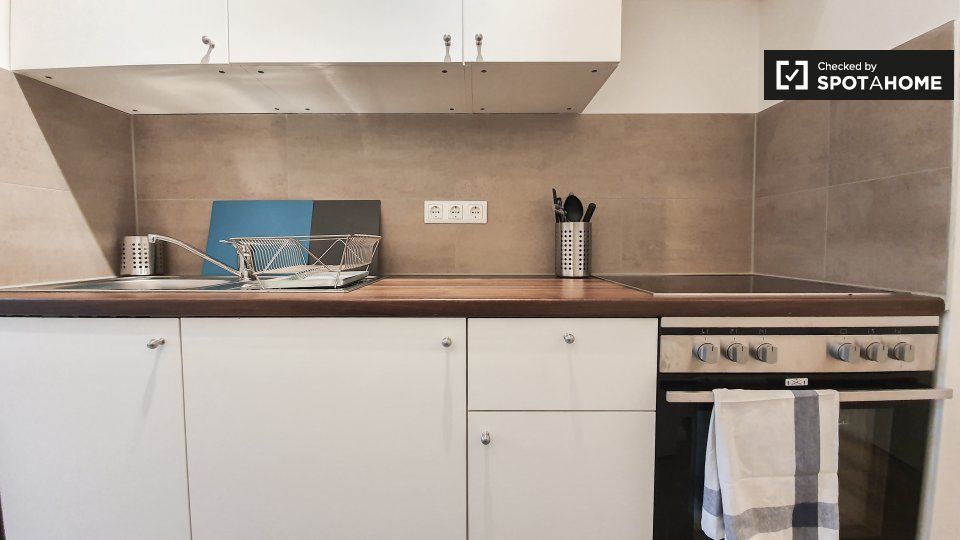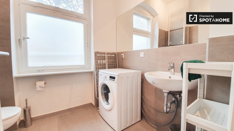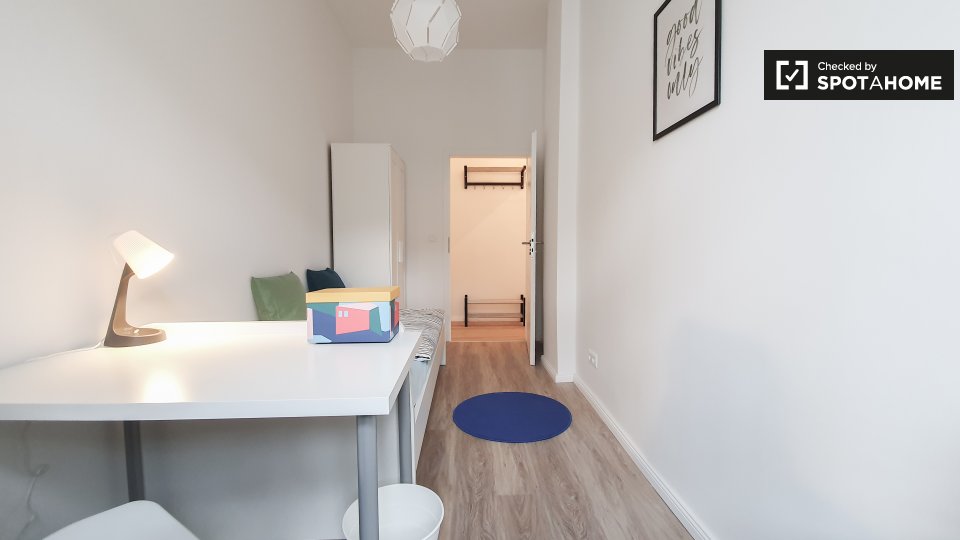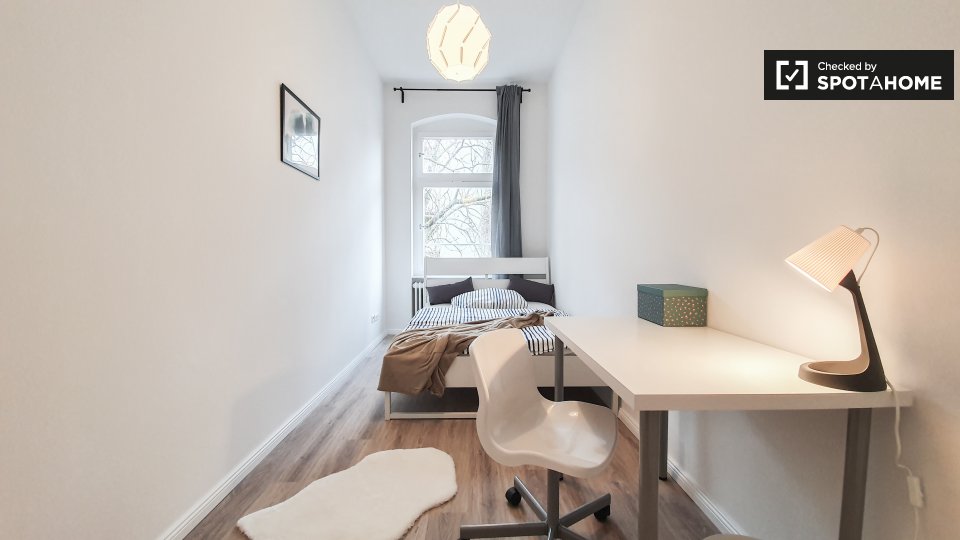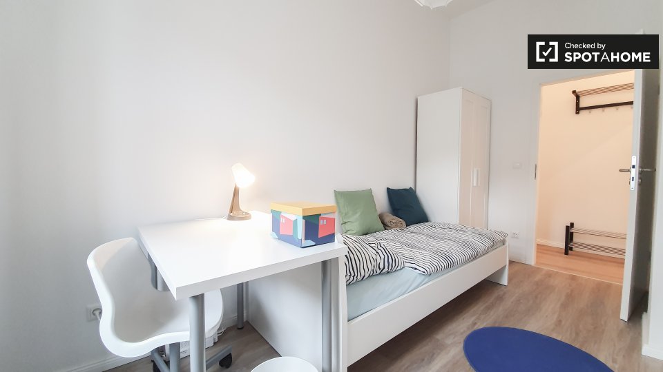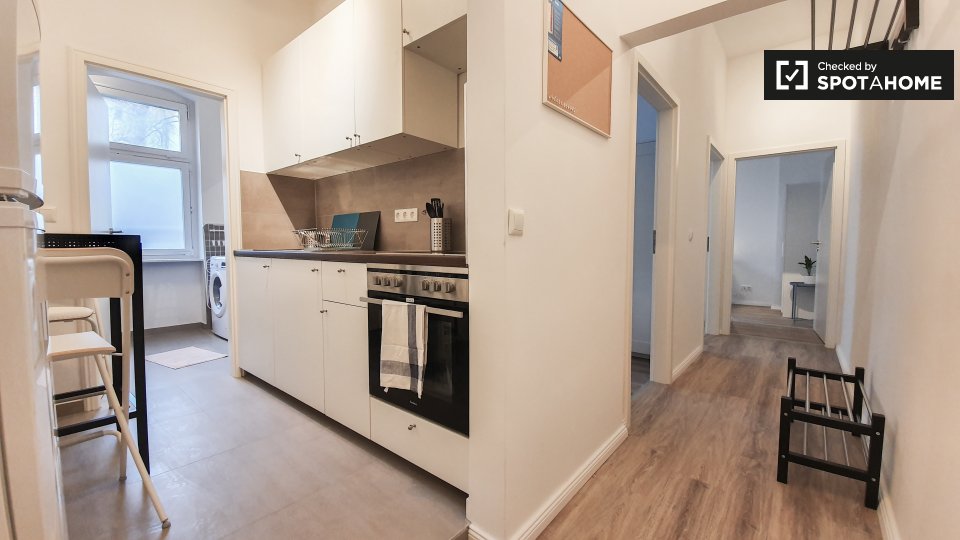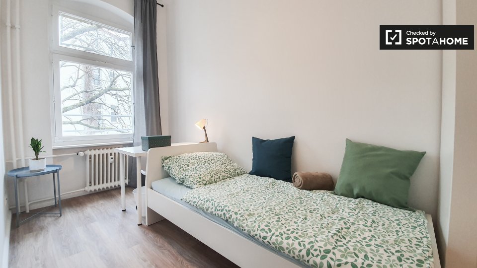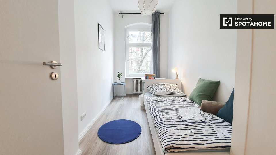 Pets not allowedNot allowedThis is a shared room in a 3-bedroom apartment located in Berlin. The property comes fully furnished and includes amenities such as a private washing machine, an oven, and an equipped kitchen. Bills are included, which covers electricity, water, gas, and WiFi. Smoking and pets are not allowed, and couples are not accepted. Both professionals and students are welcome. This property has been checked by Spotahome, ensuring its trustworthiness.
