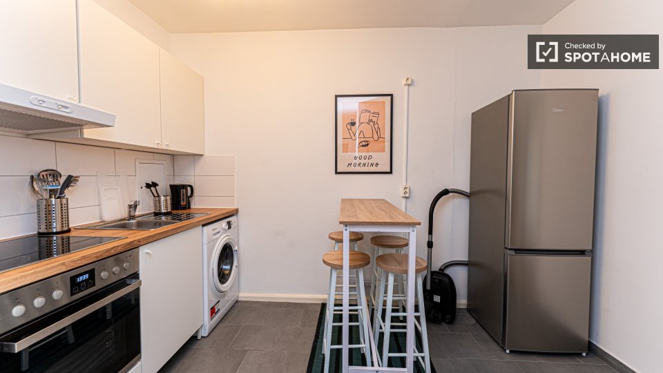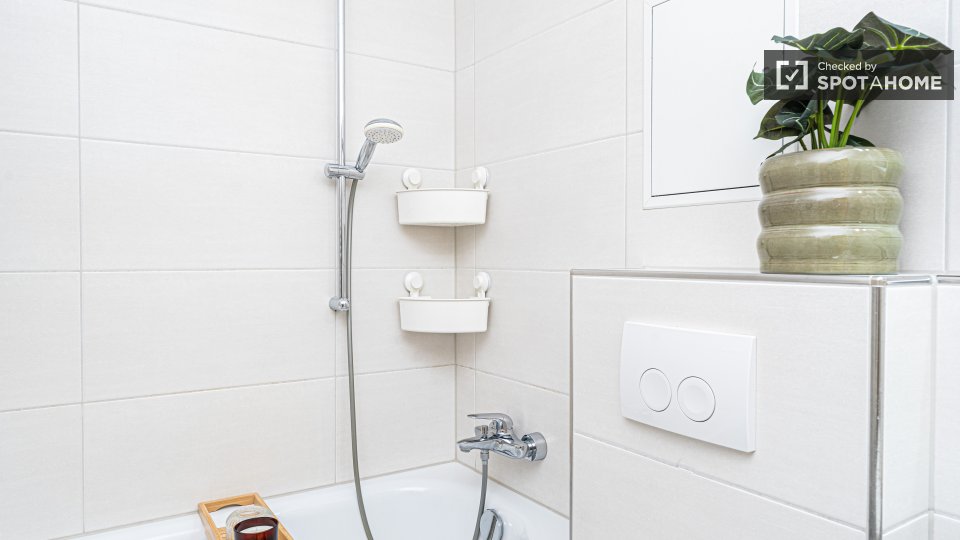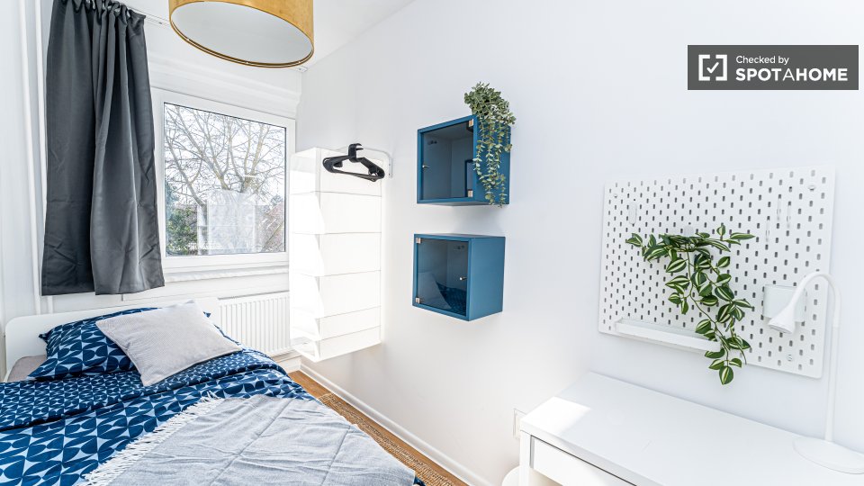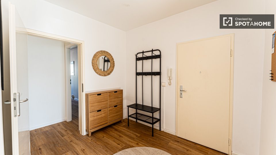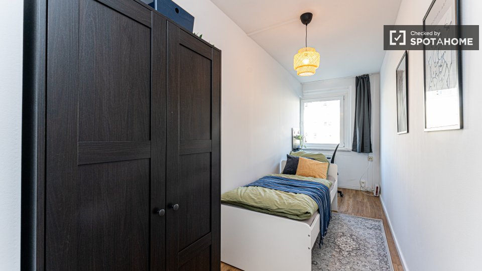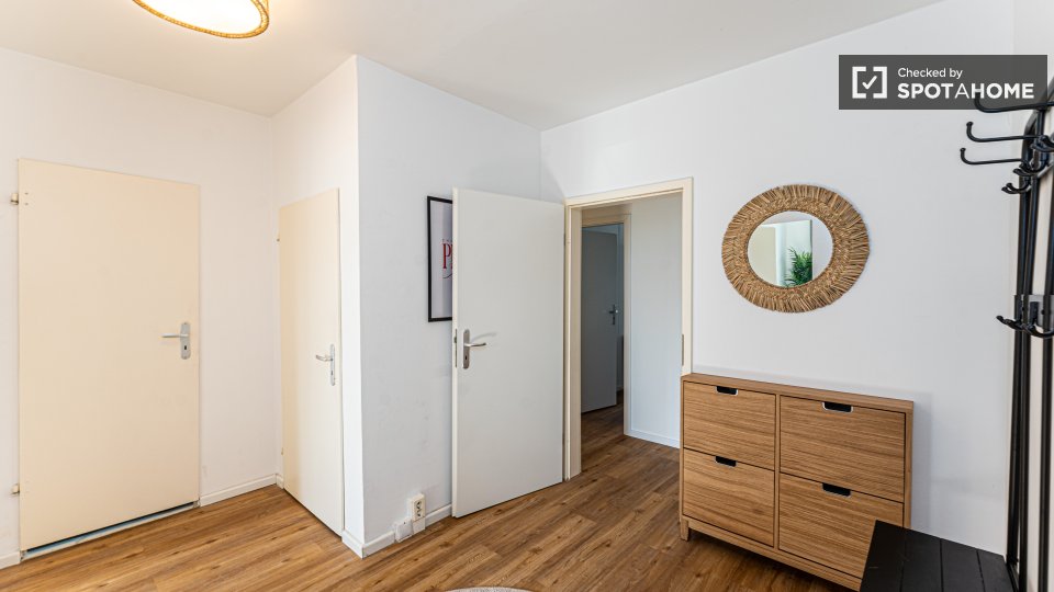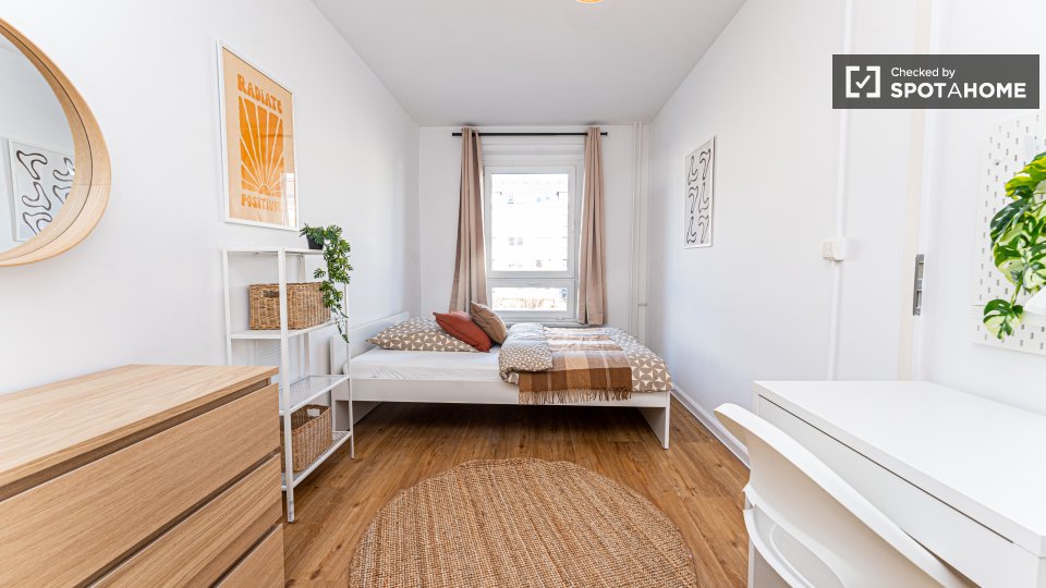 Pets not allowedNot allowedLocated in Berlin, this exterior room in a shared 6-bedroom apartment offers a practical living arrangement. The property is furnished and has an equipped kitchen. It also includes a private washing machine and provides an oven. The property covers the cost of electricity, water, gas, WiFi, and heating, ensuring convenience for its tenants. Please note, pets and smoking are not allowed, and the accommodation is suitable for professionals and students only. Couples are not permitted to stay here. Spotahome has personally checked the property for your confidence.