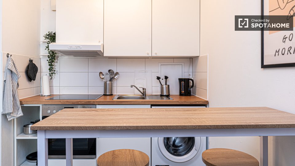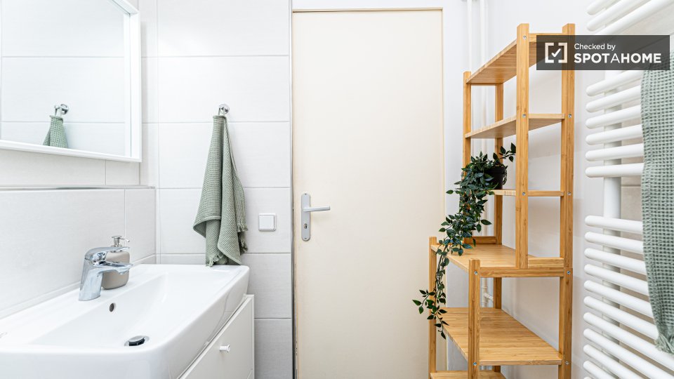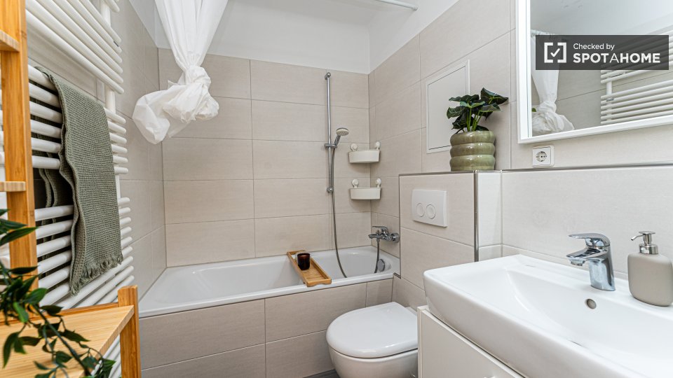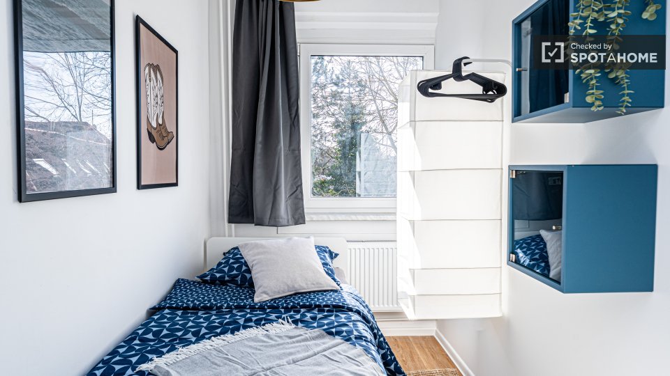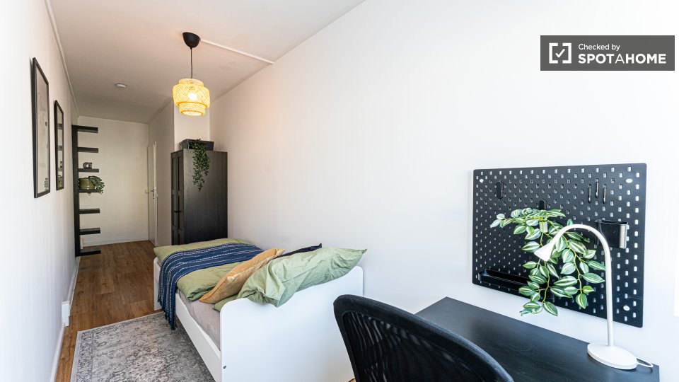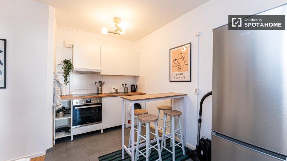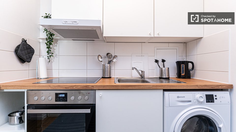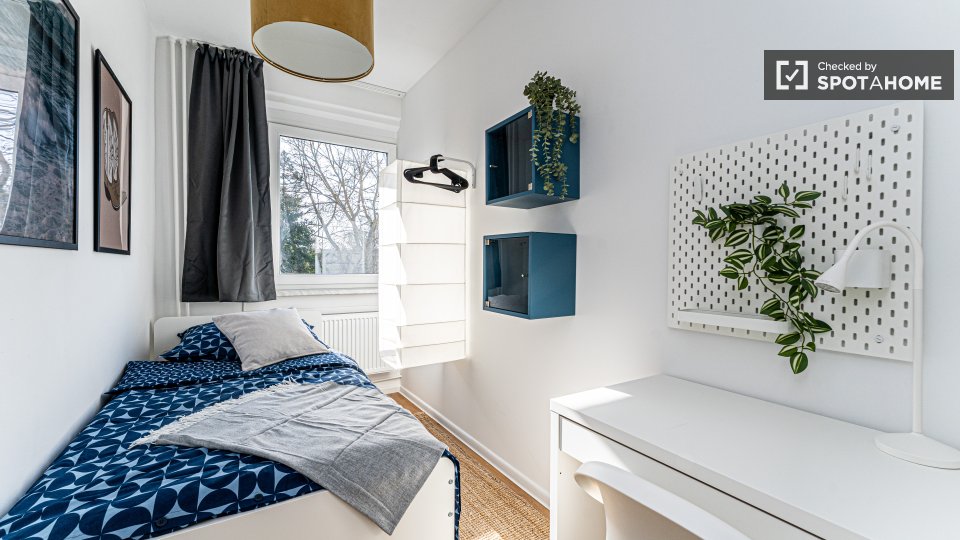 Pets not allowedNot allowedLocated in Berlin, this exterior room in a shared 6-bedroom apartment offers a practical living arrangement. The property is furnished and has an equipped kitchen. It also includes a private washing machine and provides an oven. The property covers the cost of electricity, water, gas, WiFi, and heating, ensuring convenience for its tenants. Please note, pets and smoking are not allowed, and the accommodation is suitable for professionals and students only. Couples are not permitted to stay here. Spotahome has personally checked the property for your confidence.
