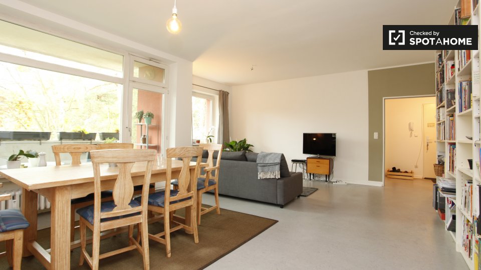 Steglitz-Zehlendorf is a fairly quiet neighborhood, but that doesn’t mean you won’t have plenty to do here. Yehudi-Menuhin Park is only 10 minutes away, and it’s a great spot if you enjoy walking or jogging. There are a few shops and restaurants nearby, and if you love reading, you’ll enjoy the fact that there is a rare book store just 7 minutes away. You’ll need to go a little farther to catch a movie, but the Kaspertheater Wunderhorn theater is just an 8-minute walk from home. Both the Edeka and Aldi supermarkets are within a 15-minute walk, and the Free University of Berlin can be reached by foot in 12 minutes.