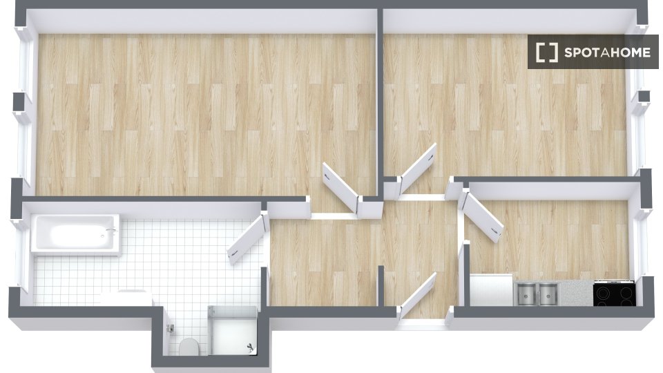 The apartment is designed in a modern style with spacious rooms and a great kitchen. All costs are included in the rent, including bills, internet, and more!