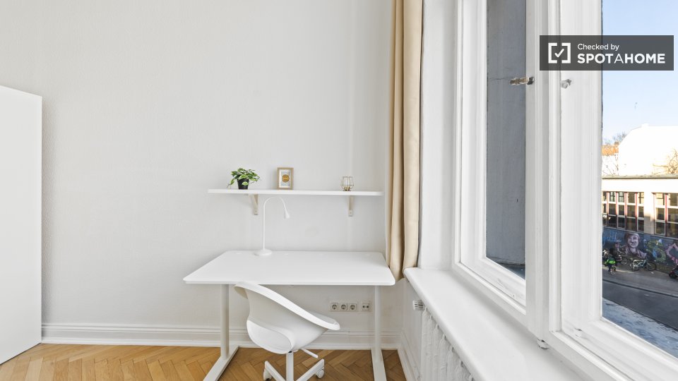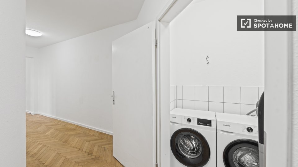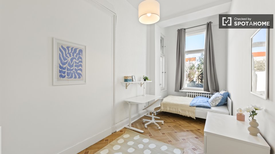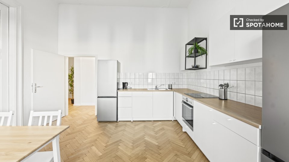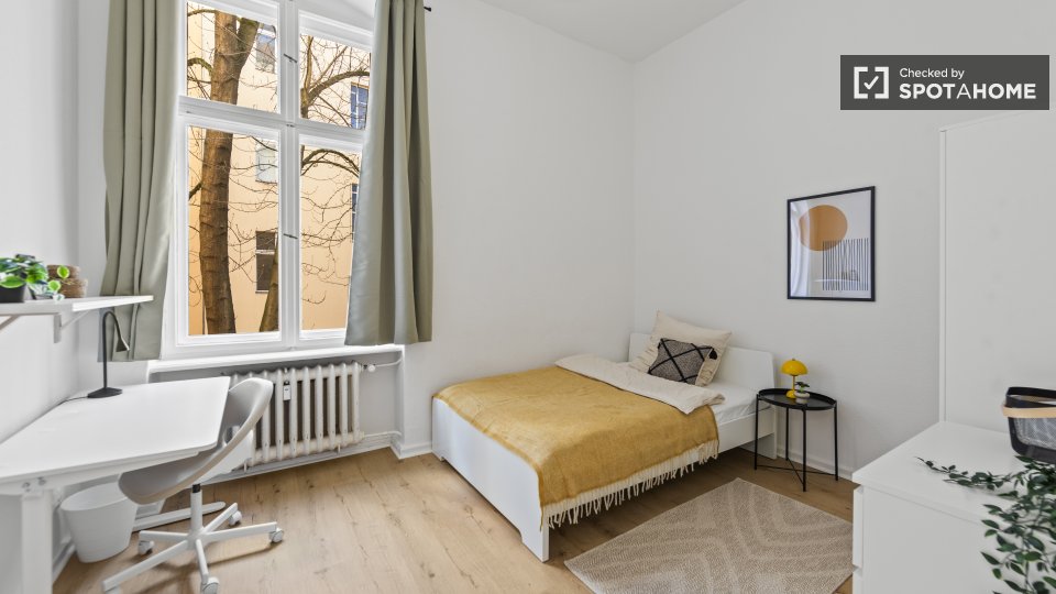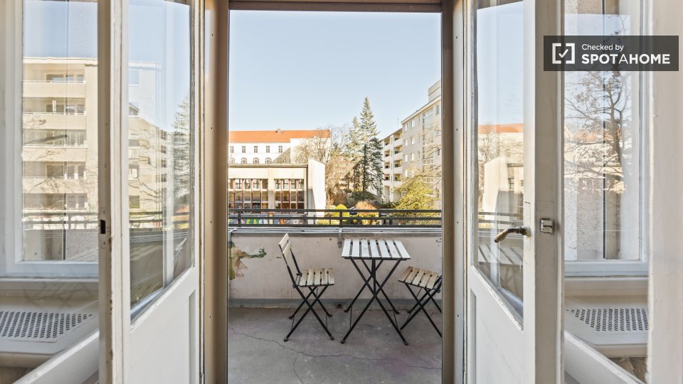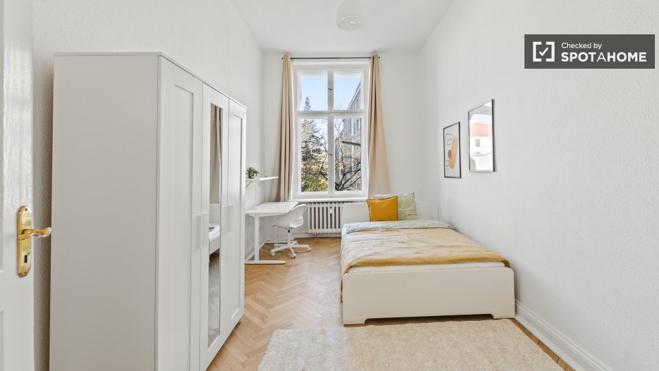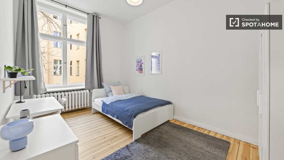 Pets not allowedNot allowedThis is a splendid room in a shared 8-bedroom apartment located in Bayerisches Viertel, Berlin. The apartment is fully furnished and features a balcony, an equipped kitchen, a private washing machine, and includes all bills (electricity, water, gas, heating, and Wi-Fi). It has been checked by Spotahome for your trust and convenience.