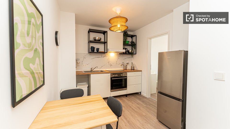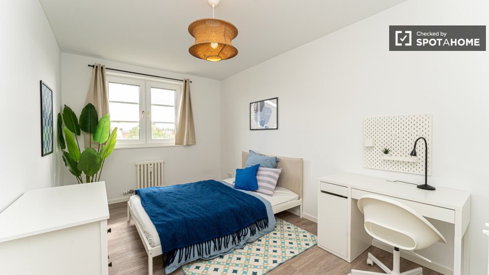 Pets not allowedNot allowedWelcome to this delightful room in a shared 4-bedroom apartment situated in Berlin. The apartment offers an exterior view and is furnished to provide a comfortable living experience. A private washing machine is available for your convenience, and the kitchen comes equipped with an oven. Additionally, the apartment features a balcony, perfect for relaxing and enjoying fresh air. All bills, including electricity, water, gas, and wifi, are included. The property has been personally verified by a Spotahome homechecker, ensuring trust and reliability.