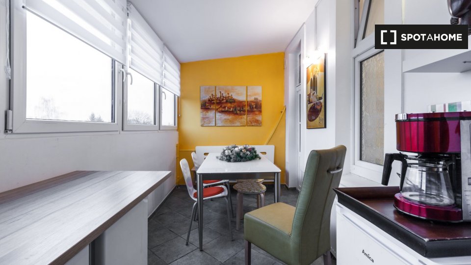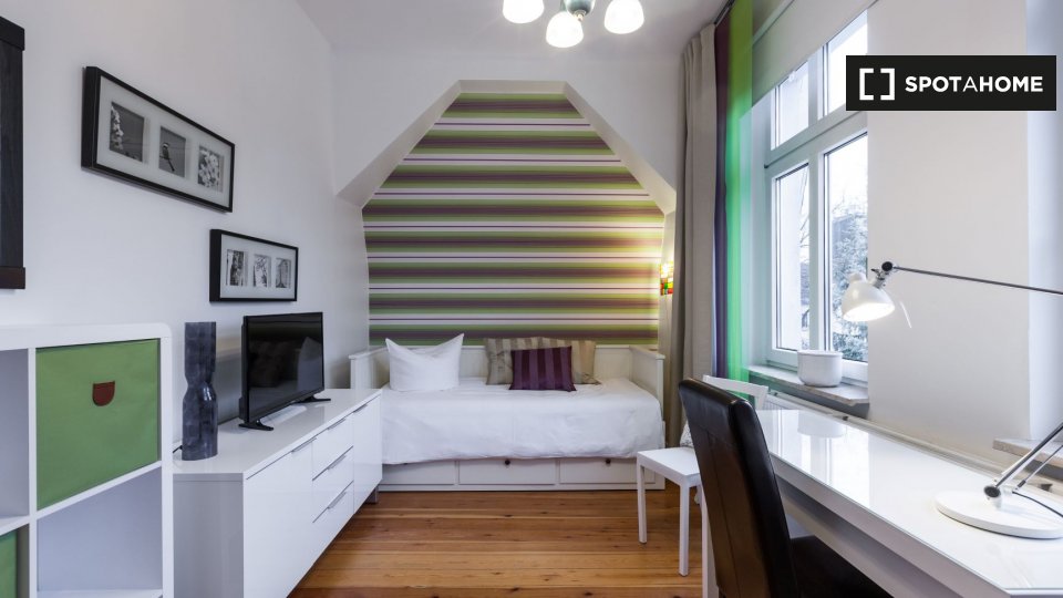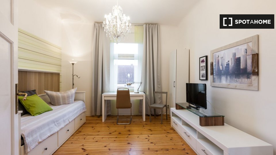 Pets not allowedNot allowedThis inviting room is part of a shared 9-bedroom apartment located in Berlin. The room comes fully furnished, offering a cozy and functional space with access to central heating and a well-equipped kitchen. Electricity, water, gas, and wifi are included in the rent, ensuring your stay is comfortable and convenient. Smoking and pets are not allowed in the property, and the apartment is perfectly suited for professionals, students, and Erasmus participants. Spotahome has personally verified this listing, adding an extra level of trust to your renting experience.
