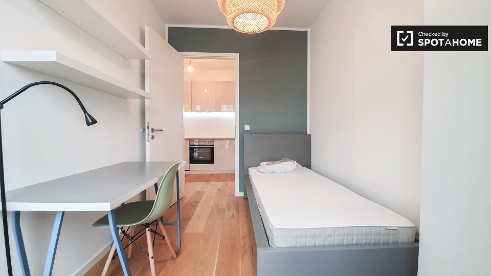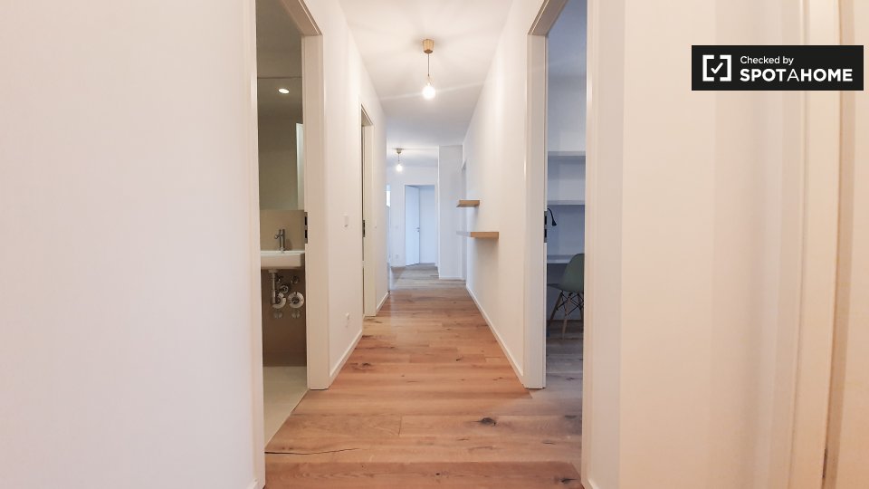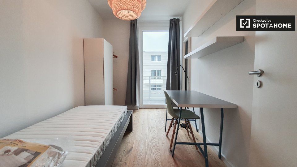 Most certainly.... This shared apartment is located in Wedding just around the corner of Leopoldplatz. This is a fantastic opportunity to have an affordable, all in package, and still enjoy the perks of a modern new build with top to bottom finishing, just bring yourself and your suitcase. Throughout the apartment you will find beautiful hardwood floor with underfloor heating, that should keep you nice and warm during the winter months. The building is unique and provides only shared apartments.