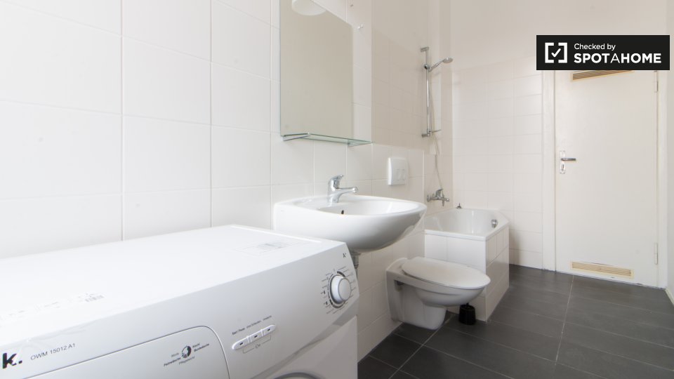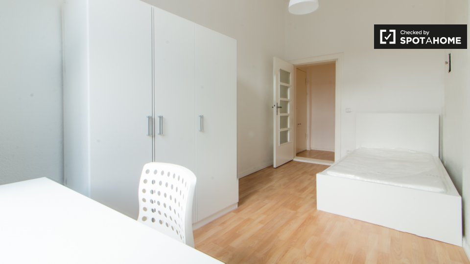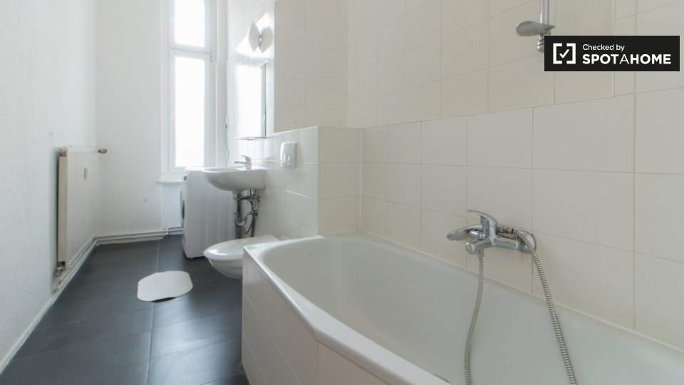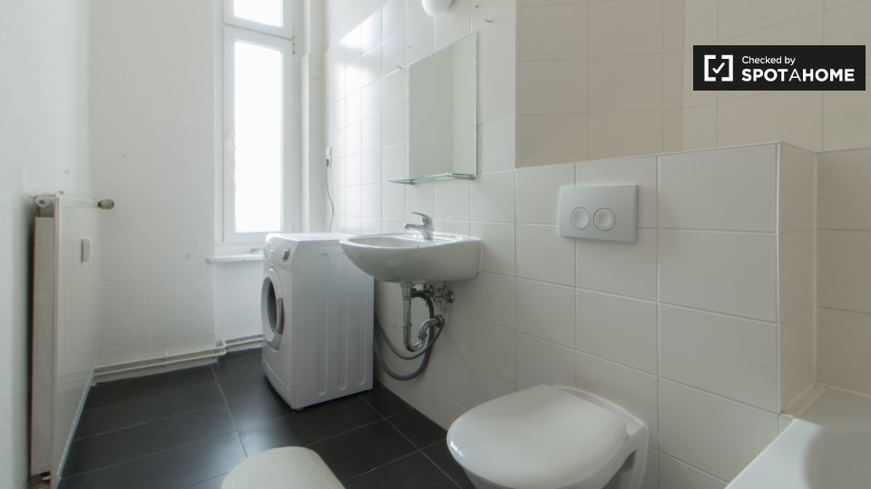 Pets not allowedNot allowedDiscover this room for rent in a 5-bedroom shared apartment in Berlin. This property is fully equipped and includes modern conveniences such as a private washing machine, a balcony, and a central heating system. The kitchen is well-equipped with an oven, and the rental price includes all utilities (electricity, gas, water, heating, and WiFi). The apartment is suitable for various tenant types, including professionals, students, and Erasmus participants. Note: Couples, pets, and smoking are not permitted. Spotahome has personally verified this listing, ensuring a trustworthy rental experience.