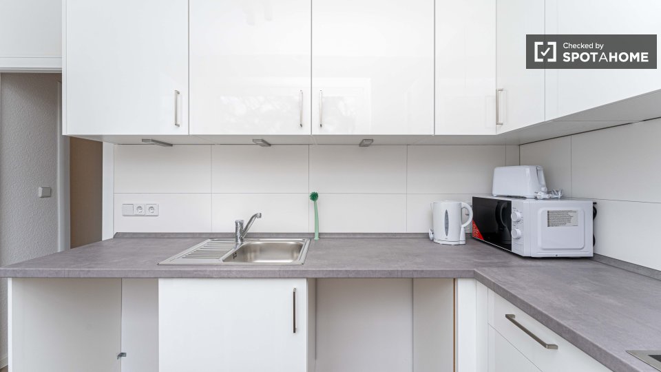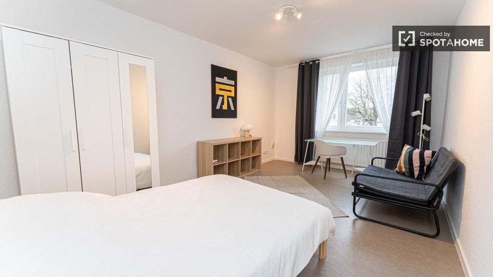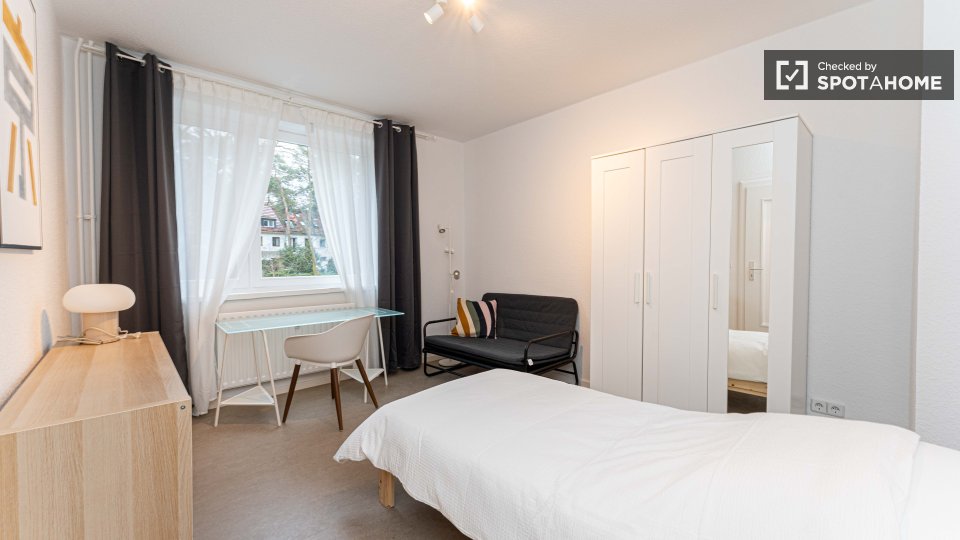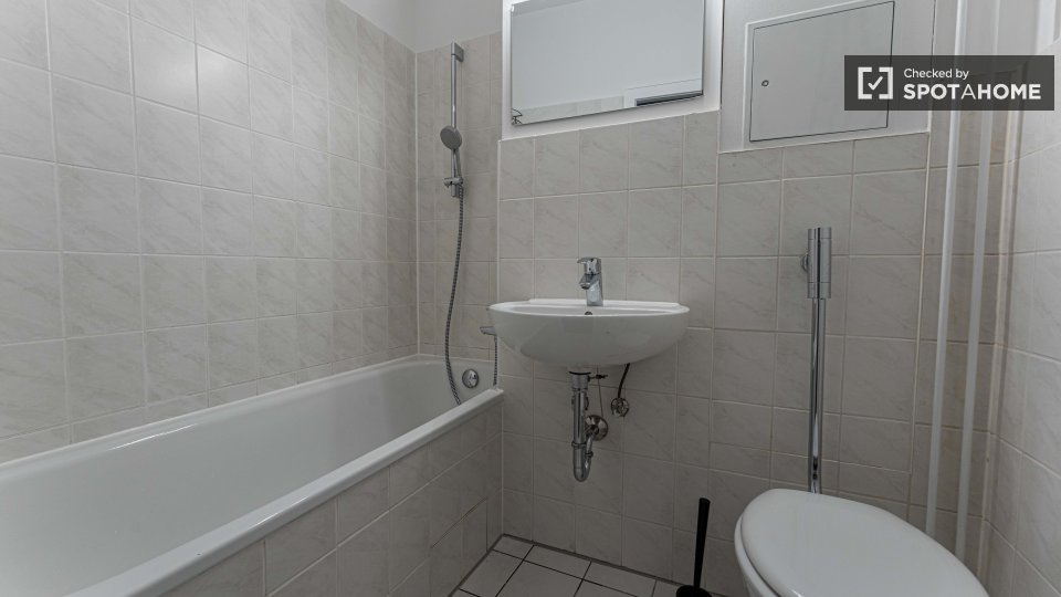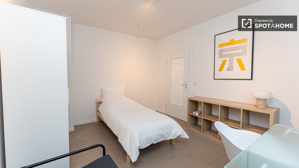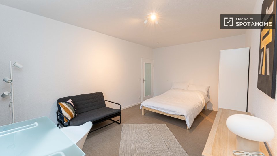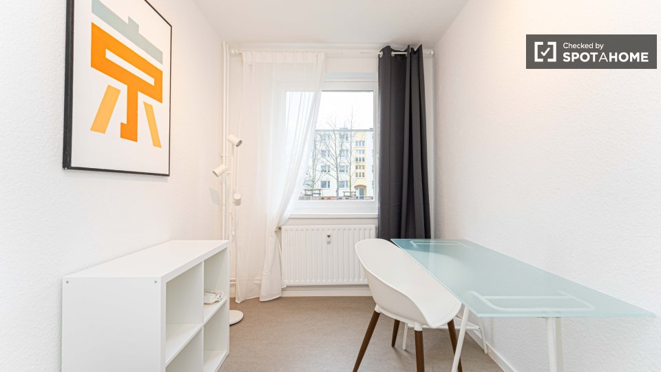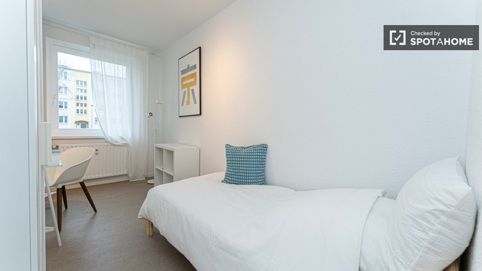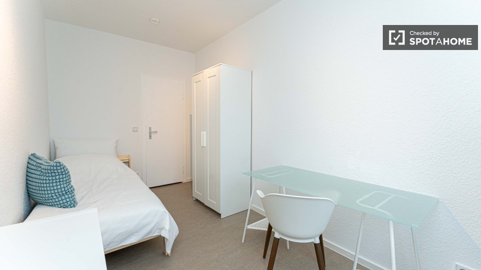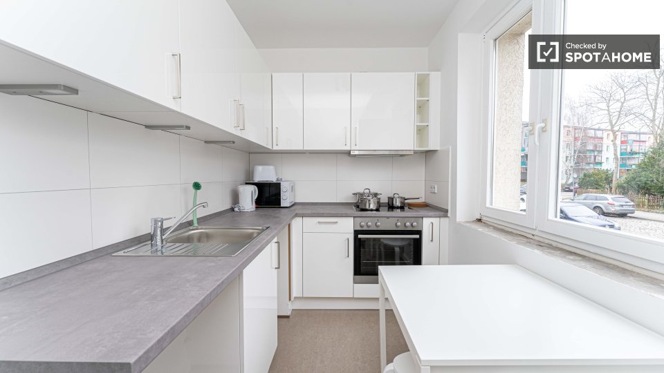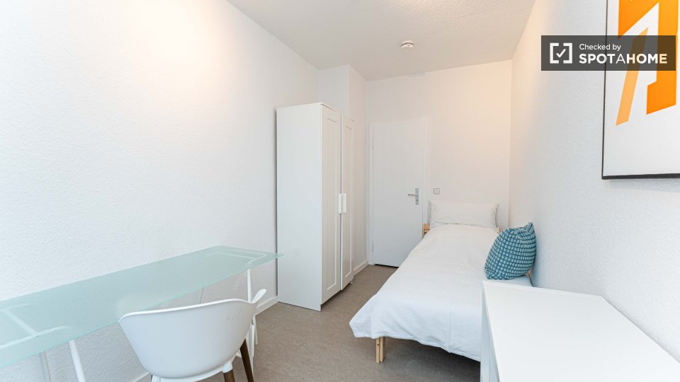 Pets not allowedNot allowedThis exterior room in a shared 4-bedroom apartment in Berlin is fully furnished, featuring a private washing machine, an oven-equipped kitchen, and all bills included in the rent. Smoking, pets, and couples are not allowed. The listing is available for professionals and students, and the property has been checked by Spotahome.
