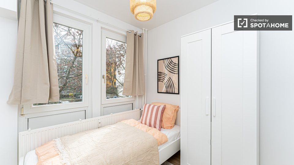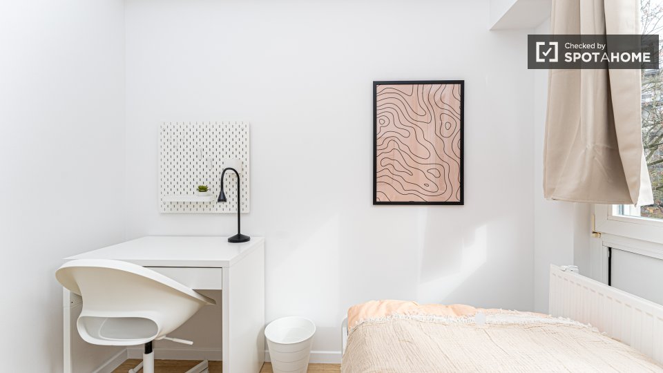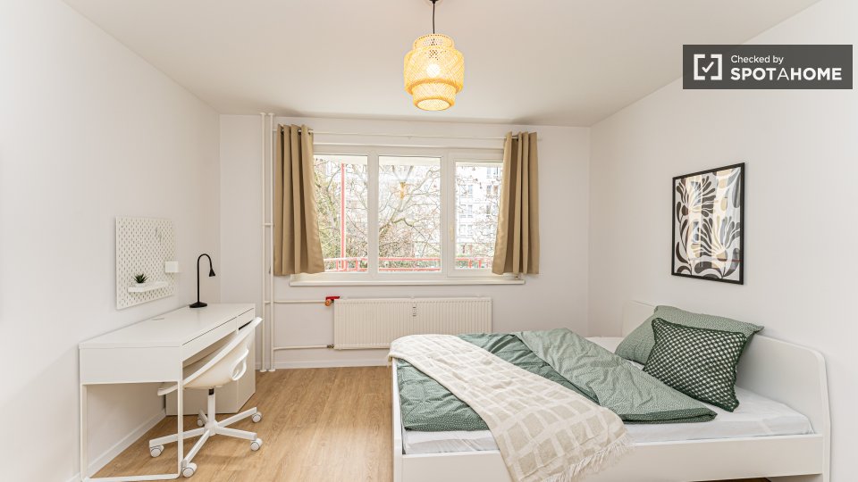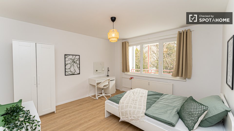 Pets not allowedNot allowedLooking for comfortable co-living in Berlin? This room in a shared 4-bedroom apartment comes fully furnished with modern amenities, including a private washing machine and a well-equipped kitchen with an oven. The apartment also features an elevator for accessible living and a spacious balcony or terrace for relaxation. All bills covering electricity, water, gas, and WiFi are included. Verified by Spotahome, this home is ideal for professionals or students seeking stress-free living in Berlin.