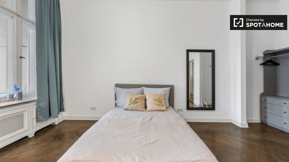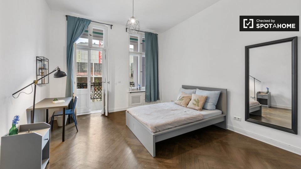 Pets not allowedNot allowedDiscover this spacious room available in a shared 9-bedroom apartment situated in Berlin. The apartment is fully furnished, features a well-equipped kitchen, balcony, and periodic cleaning is included. Enjoy comfortable living spaces with many conveniences such as a private washing machine. All utilities, including electricity, water, gas, and WiFi, are included in the rent price to ensure a hassle-free stay. Couples are not allowed.