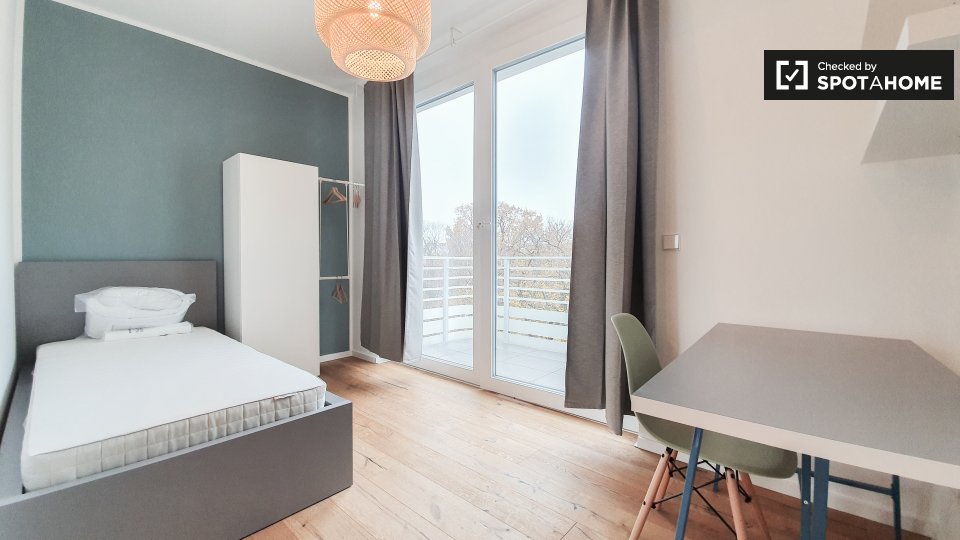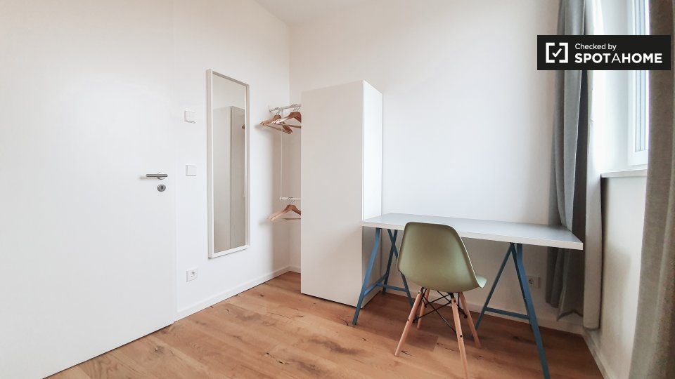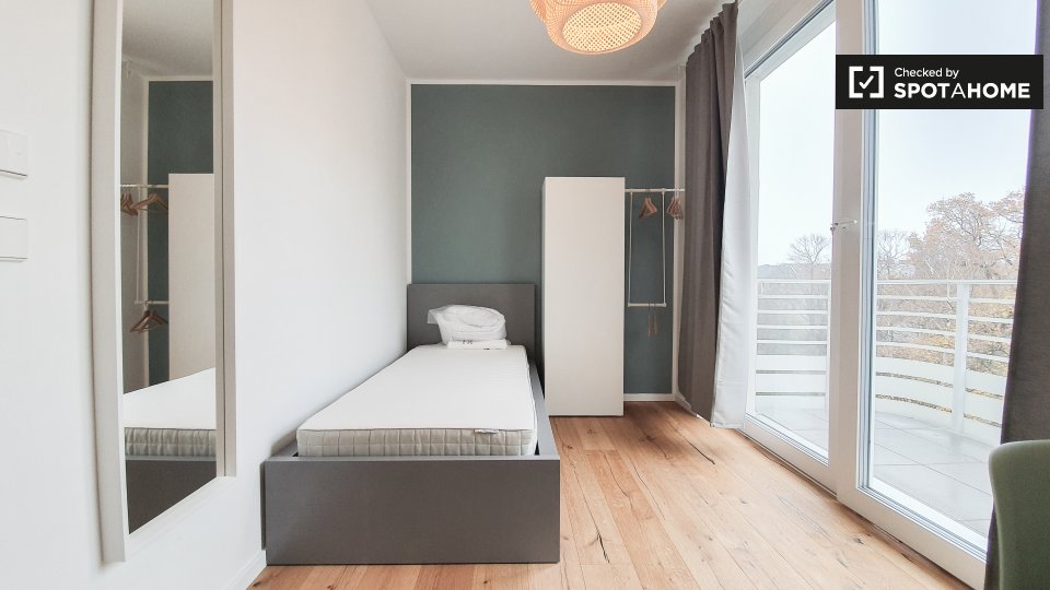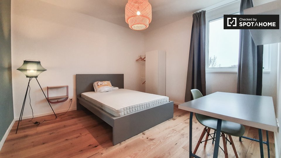 Pets not allowedNot allowedSpotahome is pleased to offer a wonderful shared room within a comfortable 4-bedroom apartment located in Berlin. The apartment comes excellently furnished, with a delightful balcony or terrace, an underfloor heating system, and a well-equipped kitchen featuring an oven. This property ensures ease with elevators and common washing machine and dryer facilities. All utility bills, including electricity, water, gas, wifi, and heating, are fully included in the rental price. Spotahome has verified the property for maximum trustworthiness, helping you find your ideal home.