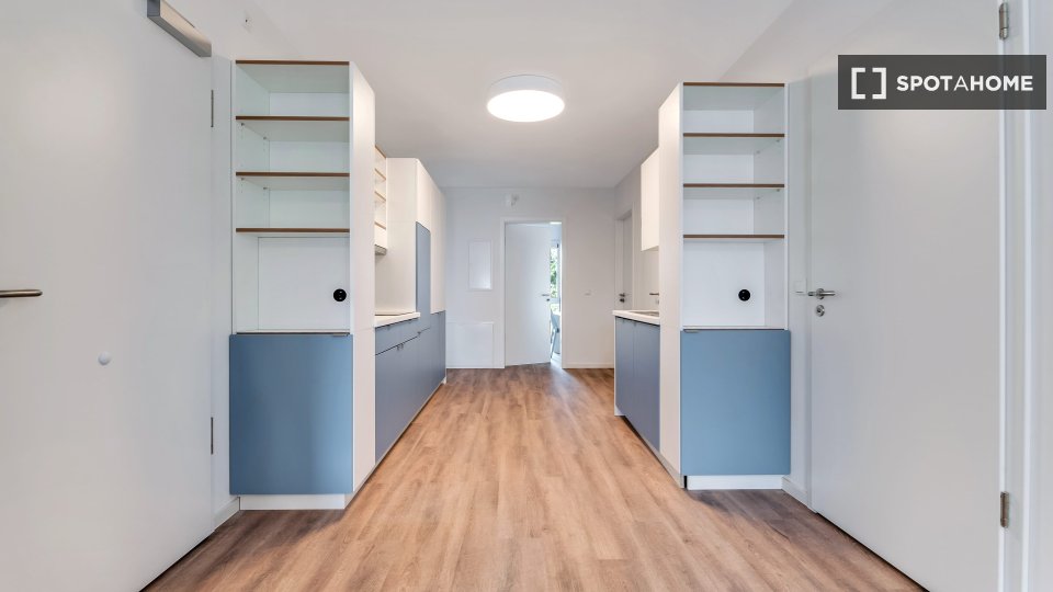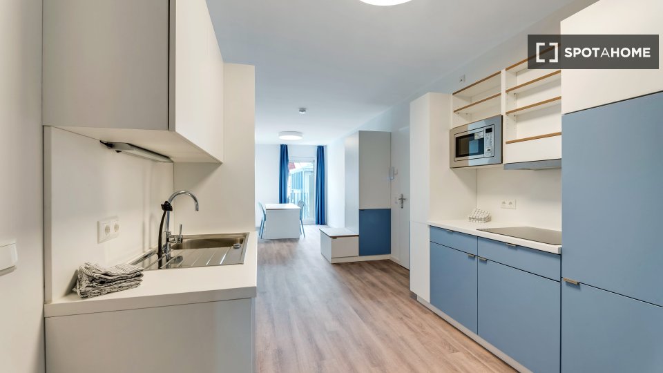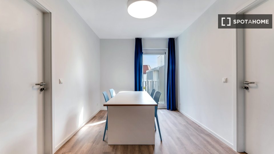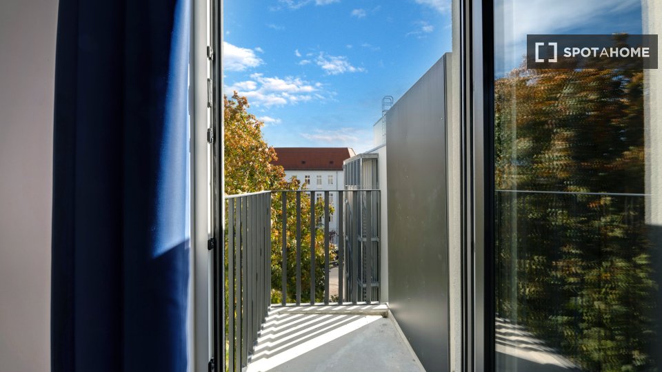 The shared rooms have a well-equipped communal kitchen with a large dining table. Of course, your room is lockable. Most rooms have balconies.