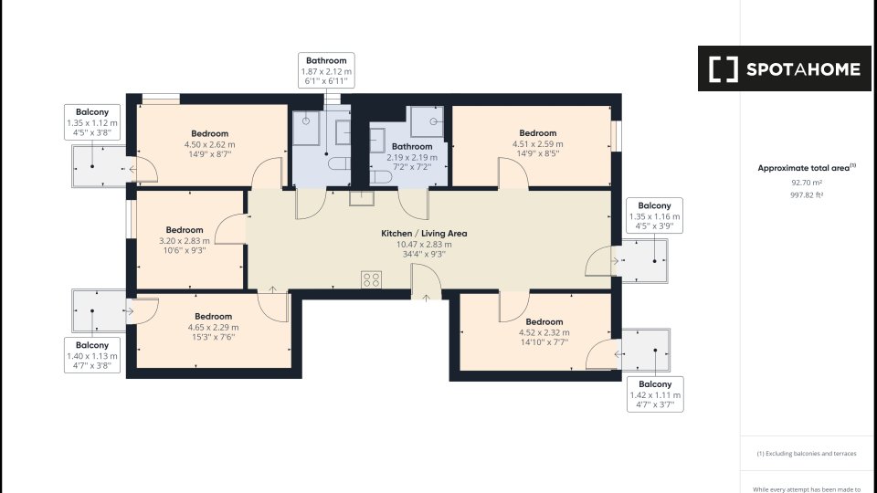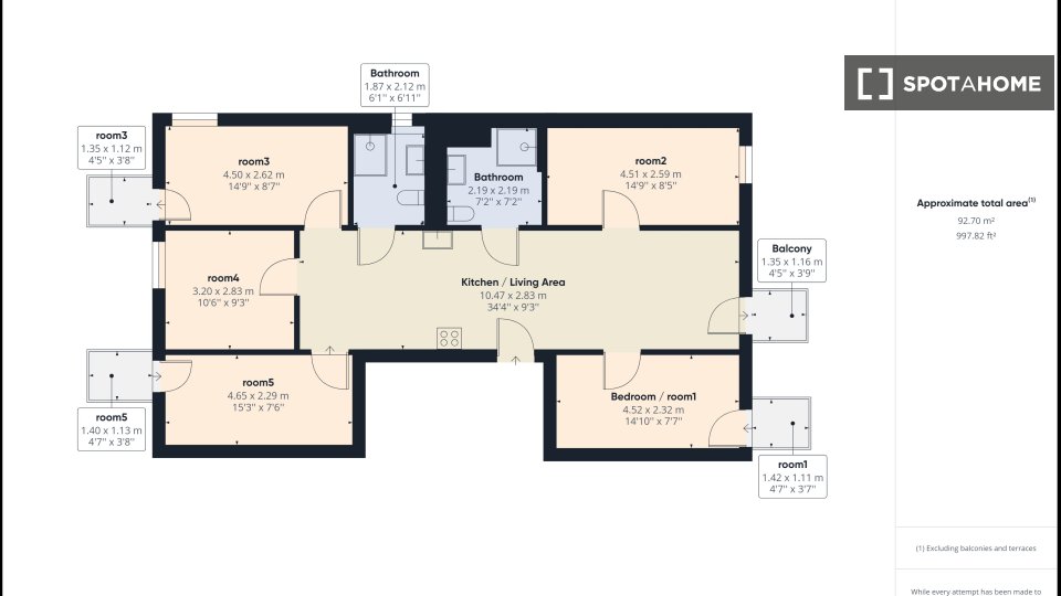 The flat is a 5-room flat-share with a shared kitchen and two bathrooms.