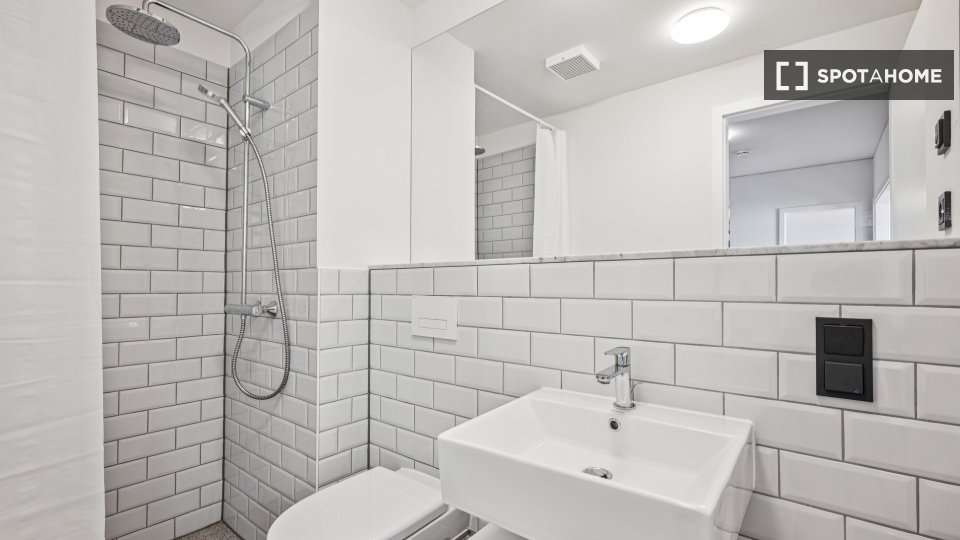 The apartments at Stromsstraße 48A are thoughtfully designed shared flats, offering a modern coliving experience that combines comfort, style, and practicality. Each unit features a fully equipped kitchen stocked with essential cooking tools, dishes, a refrigerator, and even a dishwasher to make everyday living easier. A cozy dining area provides the perfect spot to enjoy meals, socialize with flatmates, or catch up after a long day. The layout encourages both privacy and shared interaction, making it ideal for those who enjoy the balance of their own space and a friendly community. With all utilities included and modern furnishings throughout, these apartments offer stress-free city living in a convenient and well-connected location.