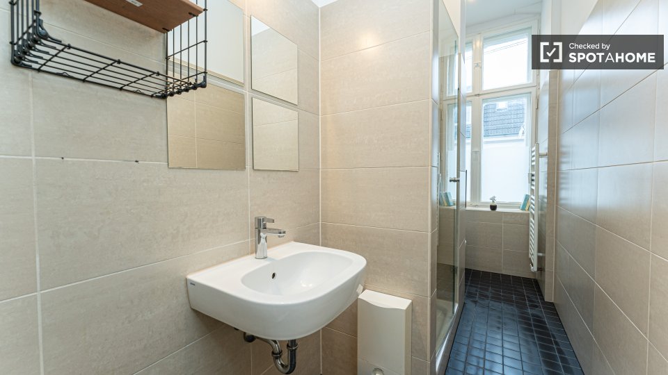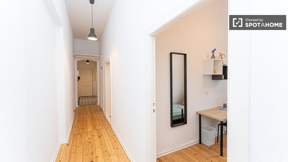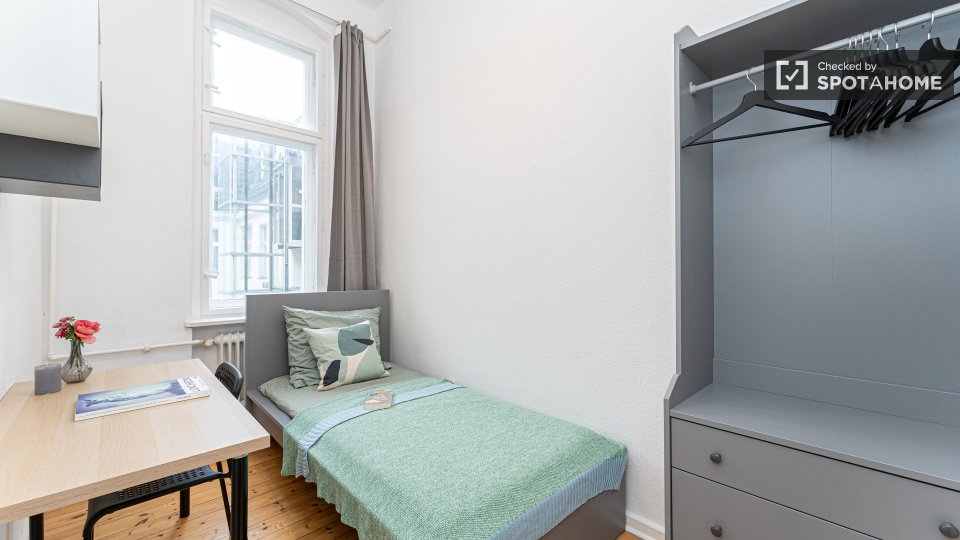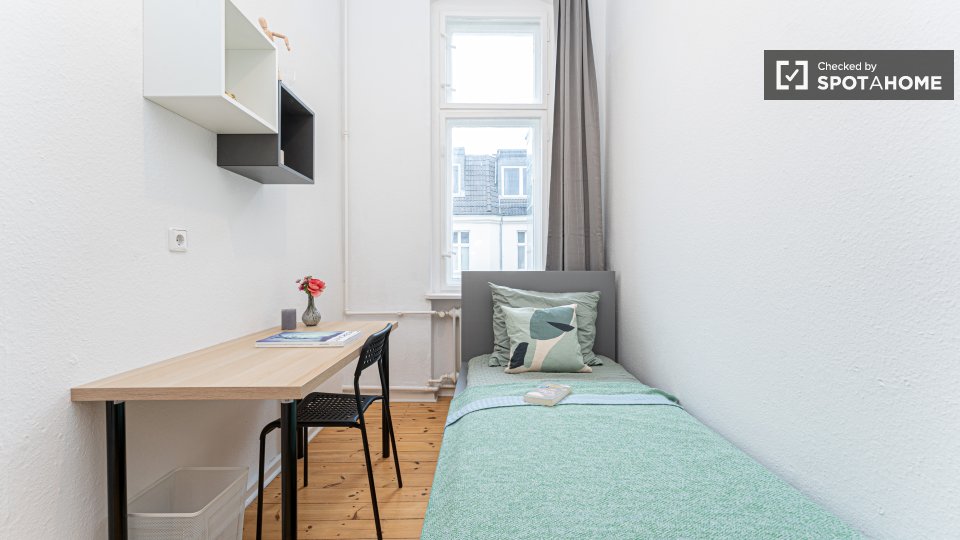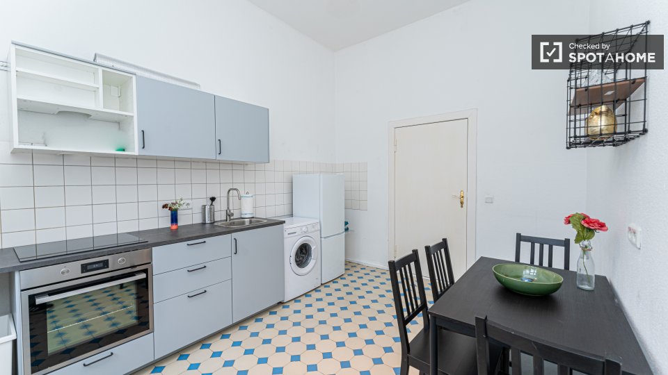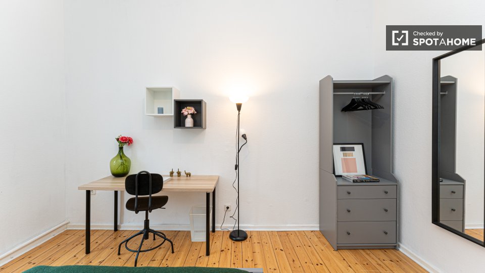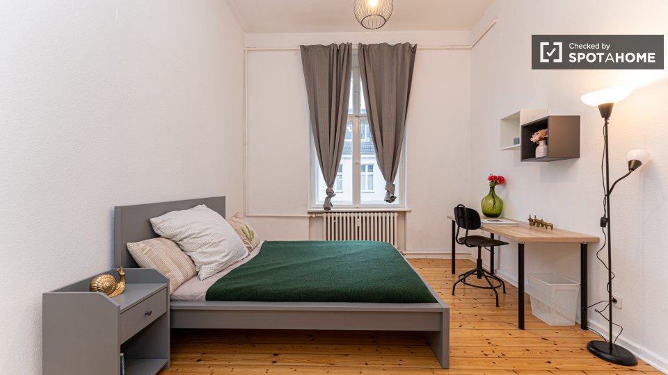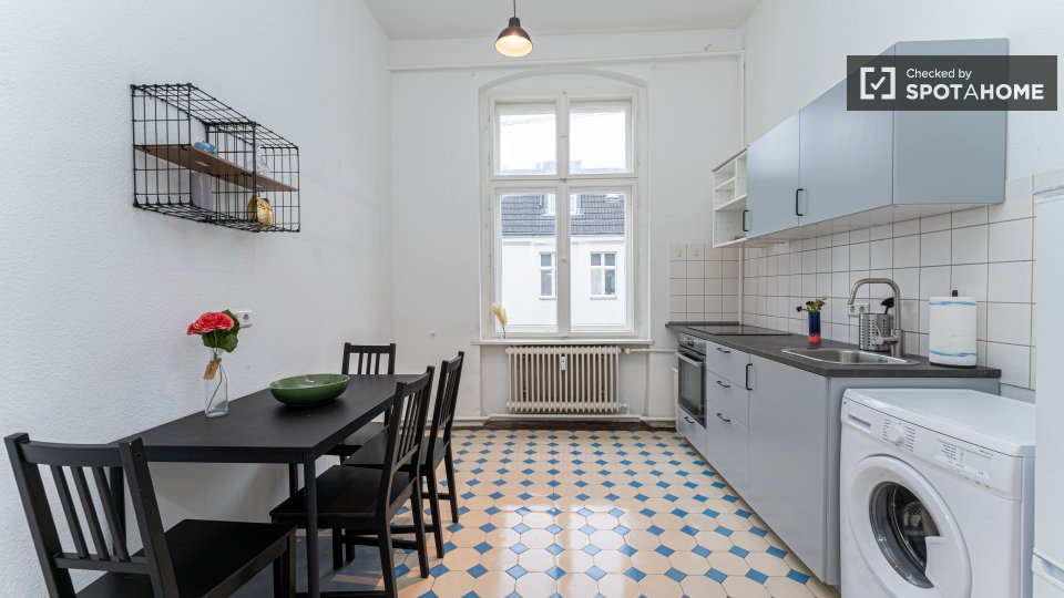 Pets not allowedNot allowedThis Spotahome-checked room is located in a shared apartment in Berlin. The apartment is furnished and equipped with a private washing machine, equipped kitchen, and an oven. WiFi, as well as all utilities including electricity, water, gas, and heating, are included. Smoking is not allowed, and couples are not permitted. Overnight guests are allowed.