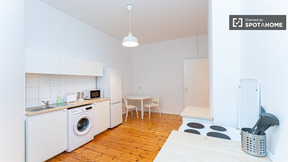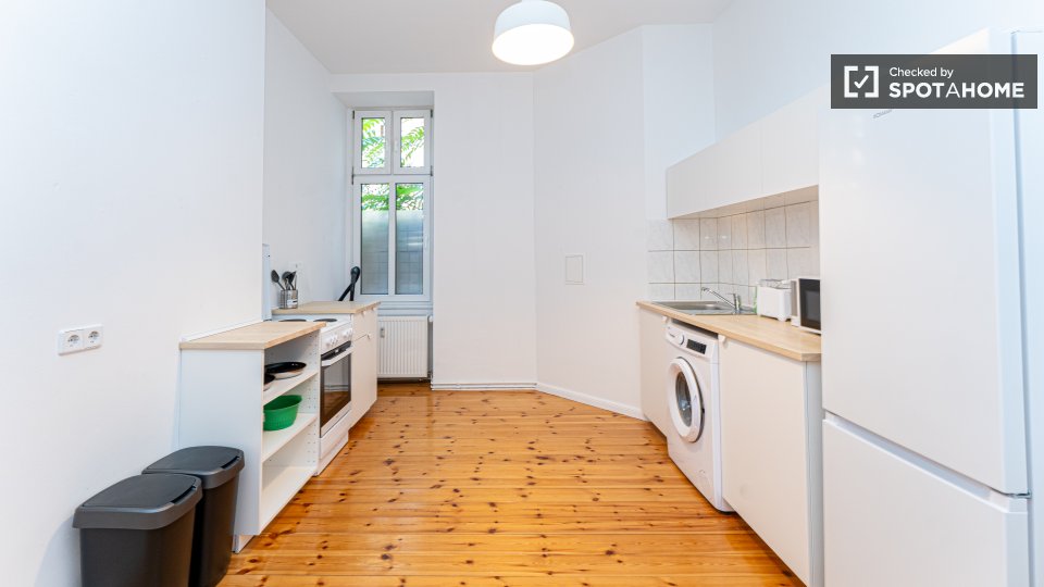 Pets not allowedNot allowedThis is a room in a shared 2-bedroom apartment located in Berlin. The apartment comes fully furnished and includes an equipped kitchen with an oven and a private washing machine. All bills are included in the rental price, offering convenience and peace of mind. Spotahome has personally checked this property to ensure its standards.