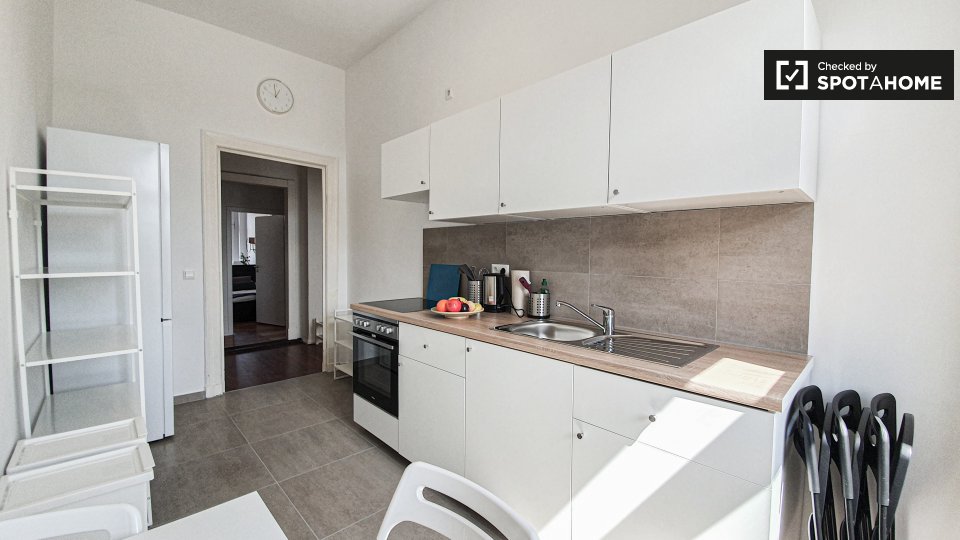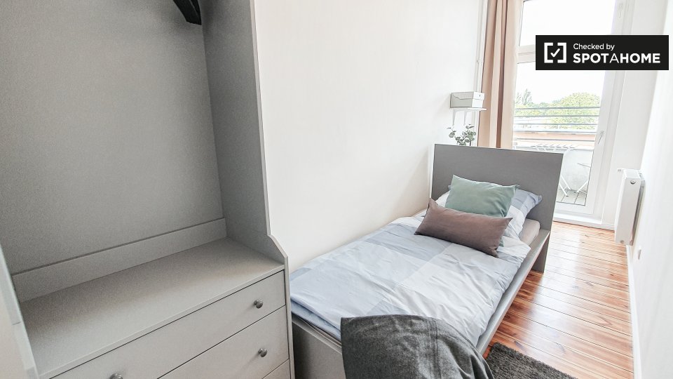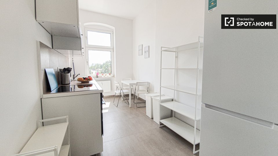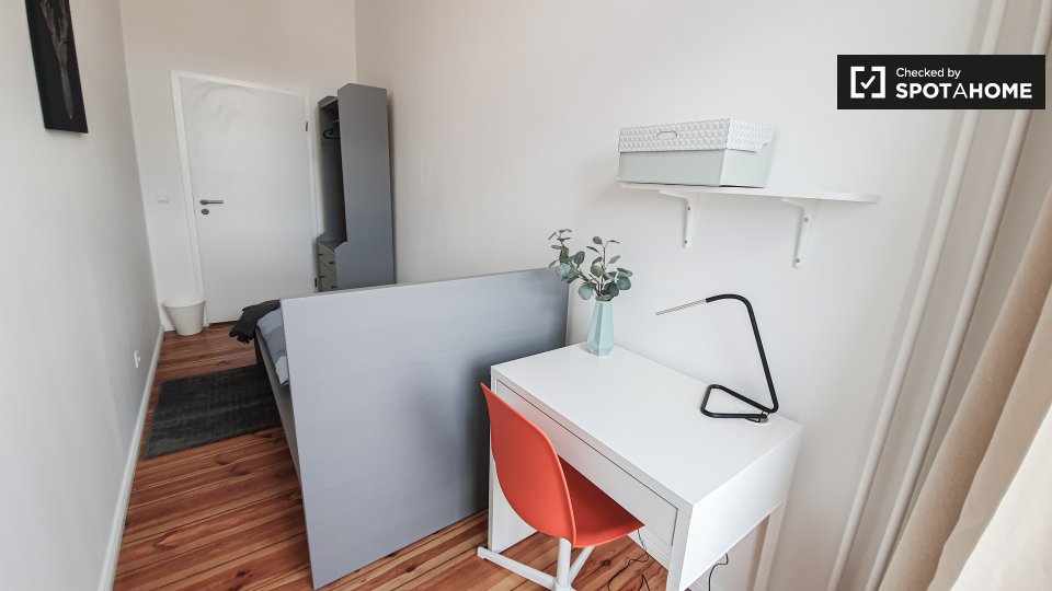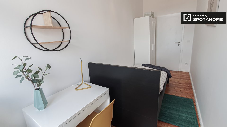 Pets not allowedNot allowedWelcome to this cozy room available in a shared 6-bedroom apartment located in Berlin. This well-maintained apartment offers an equipped kitchen and private washing machine for your convenience. All utilities are included, allowing you to focus on enjoying your stay. The property has been personally verified by Spotahome, ensuring reliability and trustworthiness.