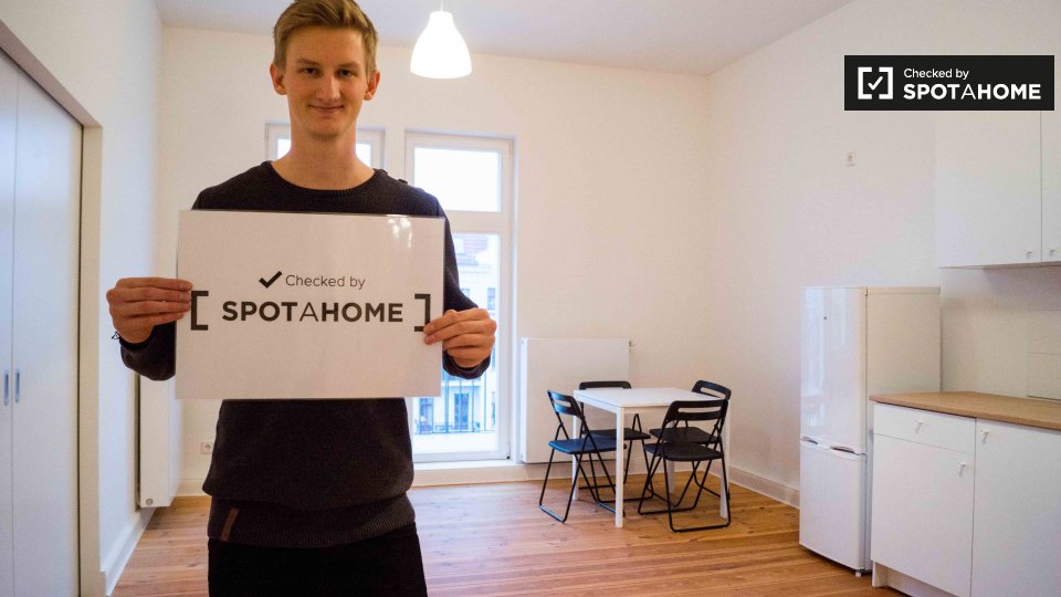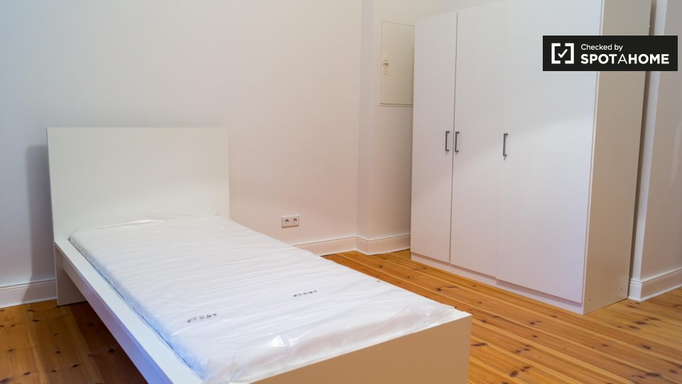 Pets not allowedNot allowedSpotahome is proud to present a room in a shared 6-bedroom apartment in Berlin. This fully furnished property features a private washing machine, central heating, and an equipped kitchen for your convenience. The apartment also has a balcony or terrace, perfect for relaxation. Couples and professionals are welcome.
