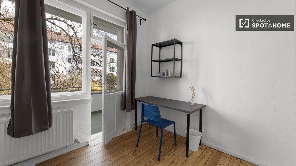Pets not allowedNot allowedFully furnished room to rent in shared flat with 3 bedrooms in Neukölln close to Tempelhofer Feld and trendy Schillerkiez. The apartment is on the ground floor and has a balcony (access from room 2 and 3).